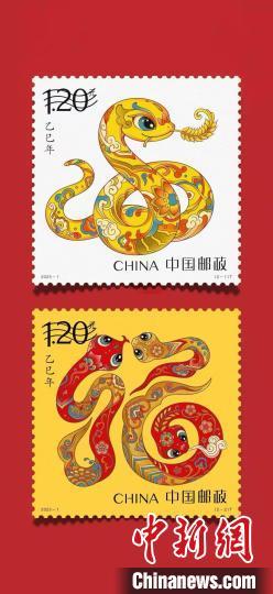 中国邮政《乙巳年》特种邮票。设计者:潘虎、张旺(受访者供图)