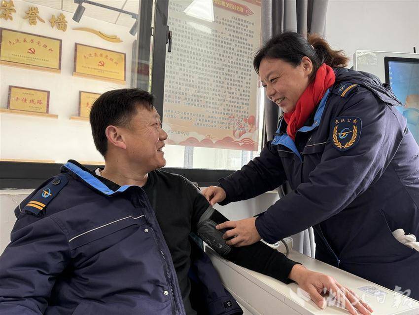 工作虽然忙碌,但这对公交“夫妻档”也有属于自己的春节团聚——运营结束后在场站相遇时,不期而遇地见面,透过车窗,一个眼神一个点头,都觉得心里很安心踏实。这也是公交夫妻独有的打招呼方式,代表着“小心开车、注意安全、服务好乘客”。