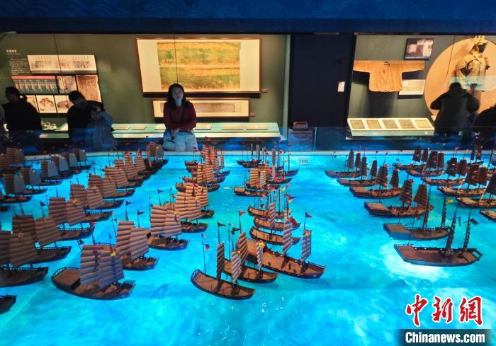 1月31日,福建泉州,中国闽台缘博物馆展示的船只模型吸引游客。中新社记者 吕明 摄