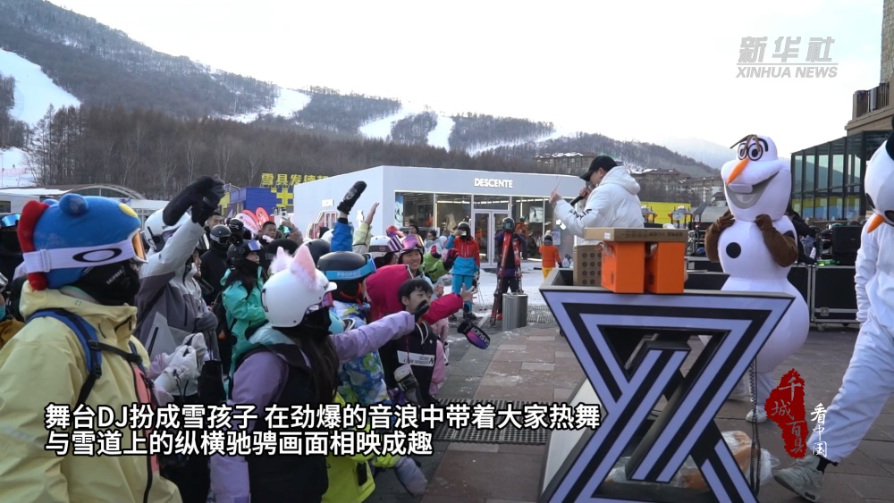 时值北京冬奥会后第三个雪季,冰雪正为国潮文化提供更广阔的舞台。春节假期,北大湖雪场雪道终点处的人潮也愈发呈现“下饺子”的密度与热度。舞台DJ扮成雪孩子,在劲爆的音浪中带着大家热舞,与雪道上的纵横驰骋画面相映成趣。