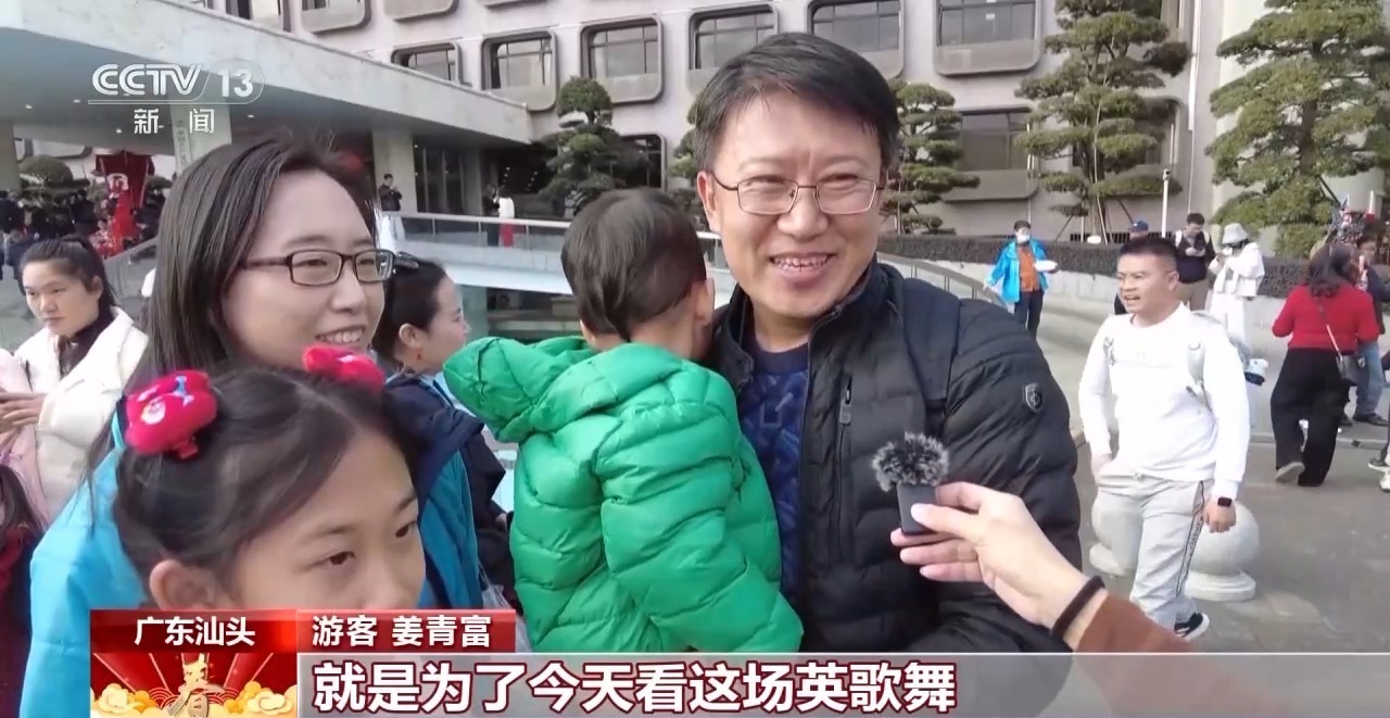 广东汕头游客 姜青富:第一次全家人跑过来,今天上午还在潮州,刚刚赶过来就是为了今天看这场英歌舞,特别应该让小朋友们多看看这些中国的传统文化。