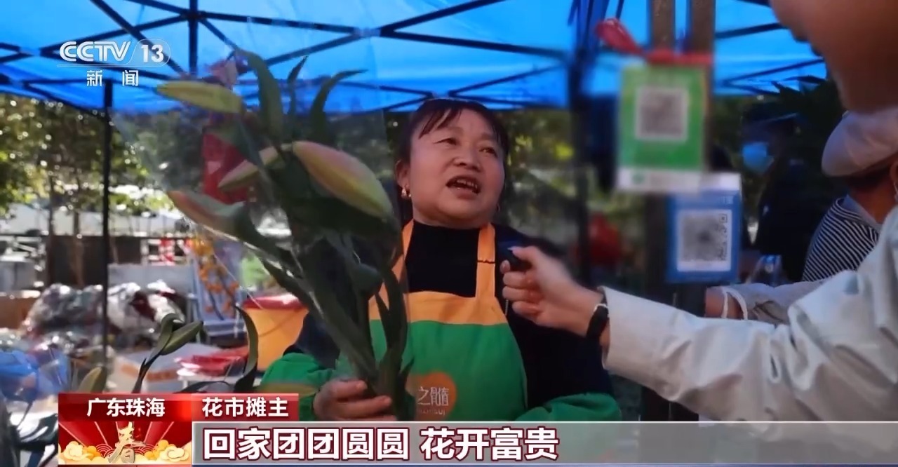 广东珠海 花市摊主:生意很好,红红火火,大家都是新年买鲜花,回家团团圆圆,花开富贵。