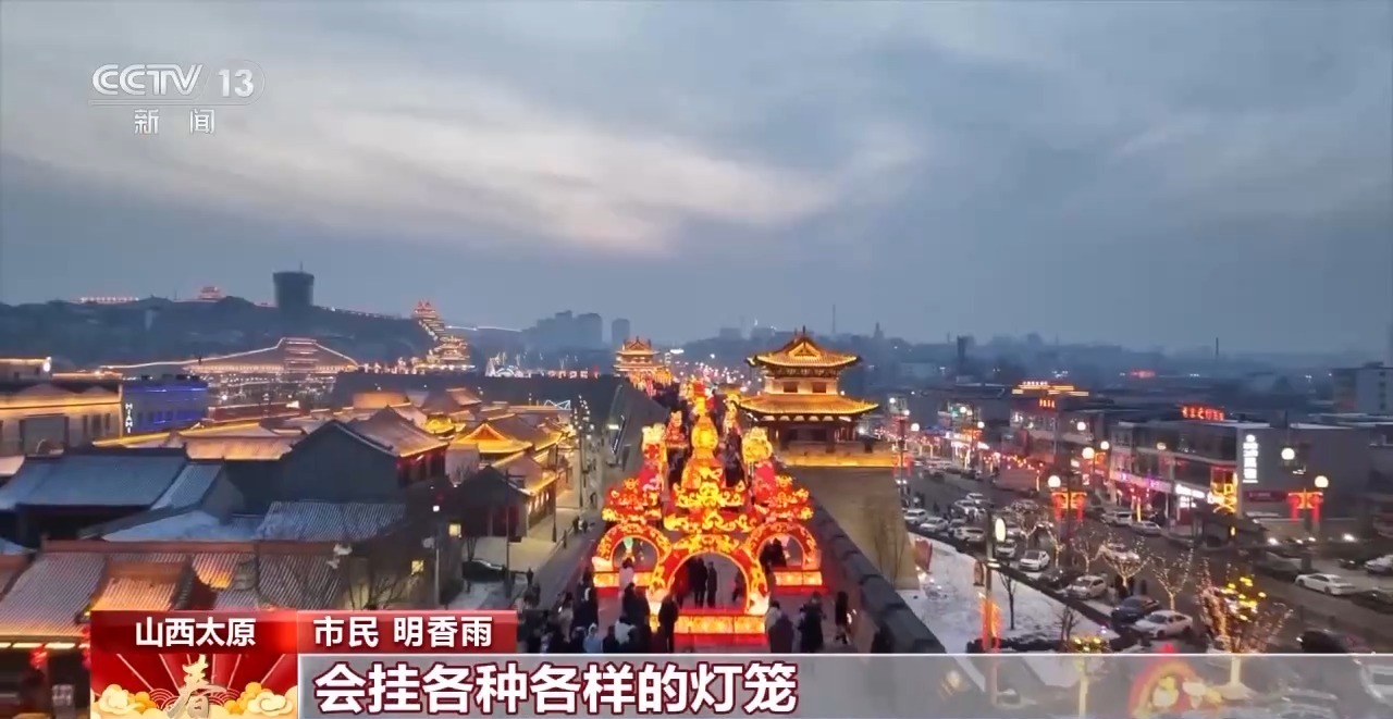 山西太原市民 明香雨:我们山西过年会挂各种各样的灯笼,你用无人机一飞就会看到,哇!一片都是红色的灯笼。山西文旅也逐渐在宣传,前一段时间还特别“出圈”,就感觉山西未来可期。