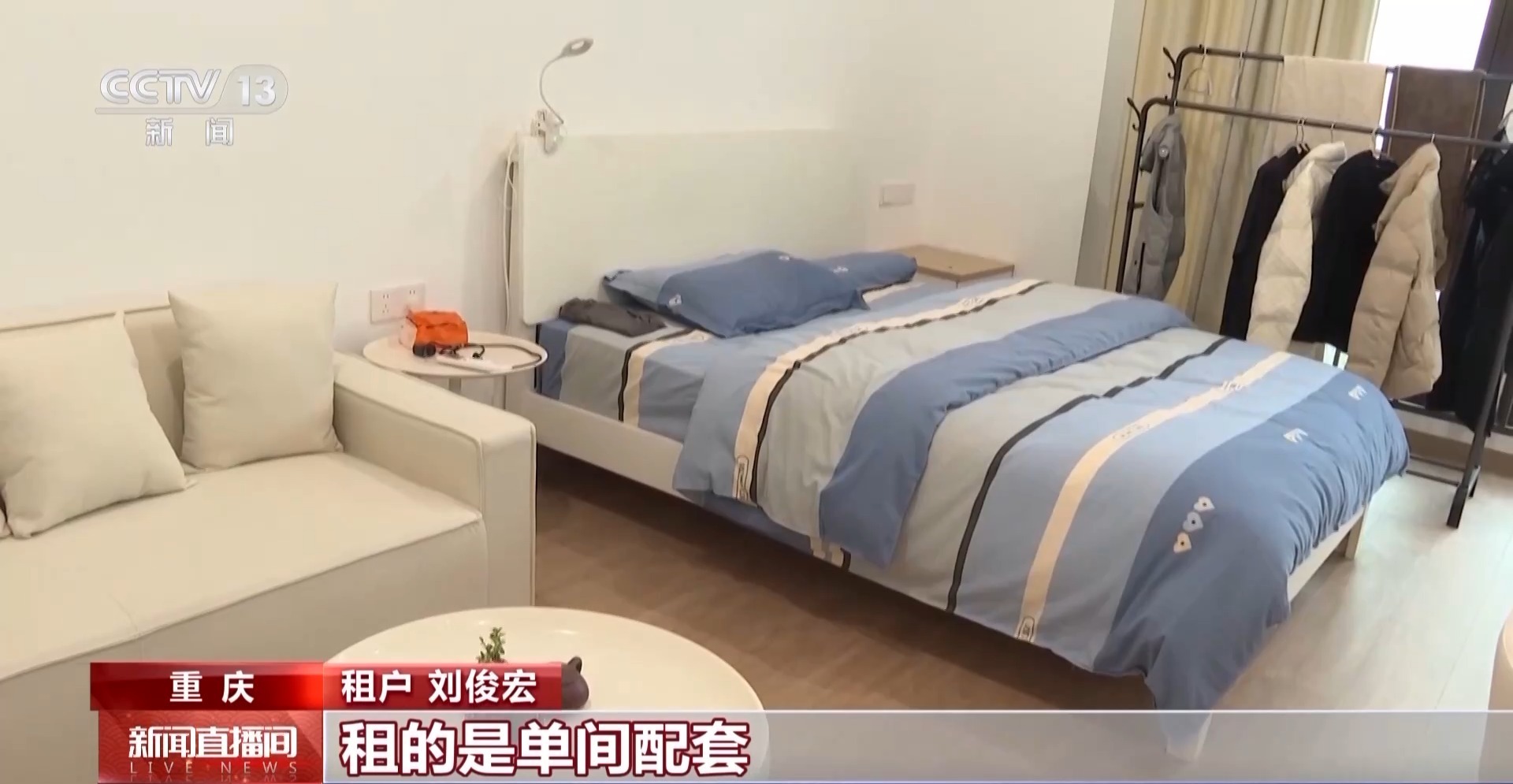 租户 刘俊宏:租的是单间配套,价格是1000元出头,房间里面家具都是新的,总的算下来一个月的租金也不贵。