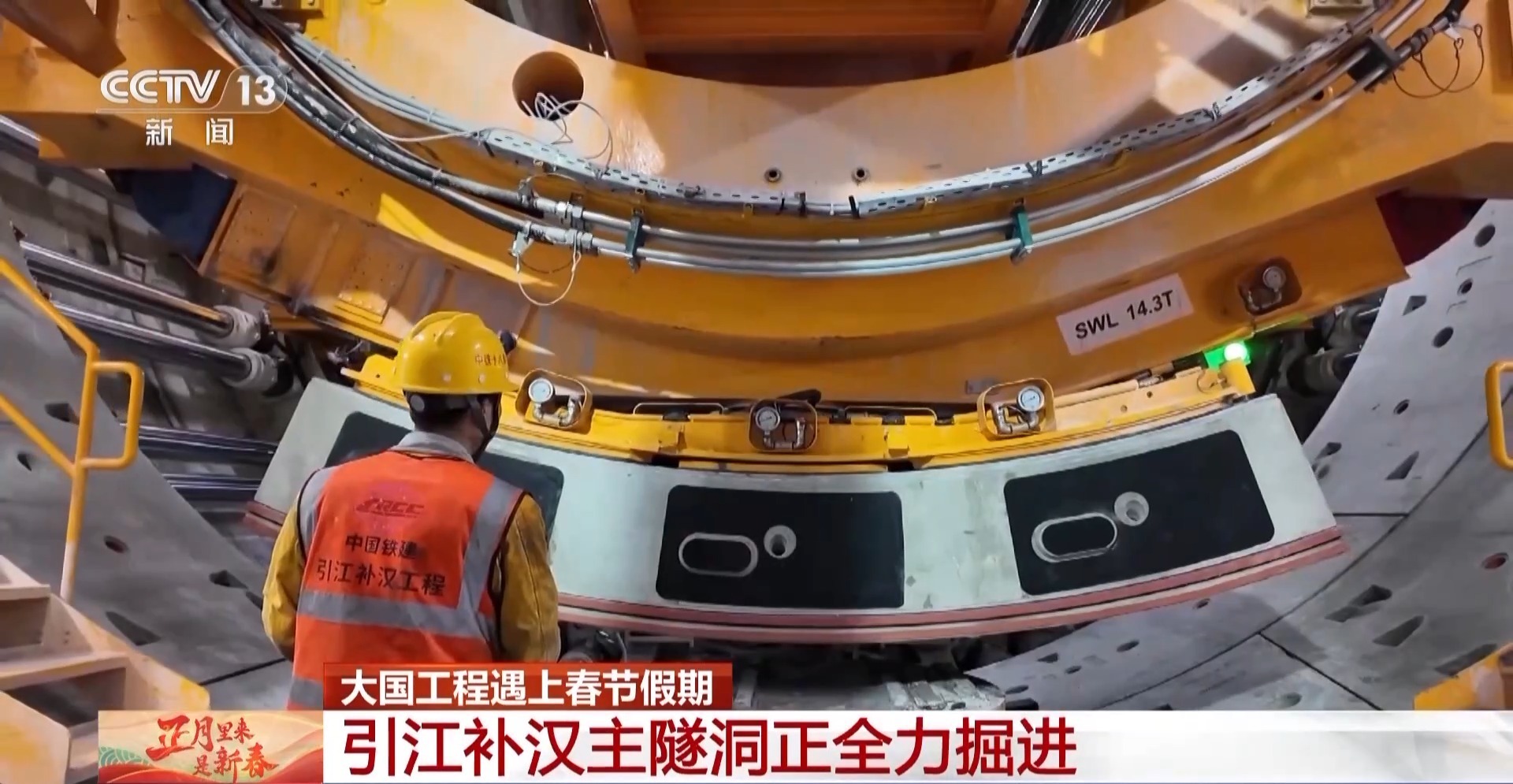 大年初一,在引江补汉工程湖北保康段施工现场,我国引水隧道最大直径单护盾硬岩掘进机“江汉先锋号”完成100环管片拼装,掘进进尺180米。