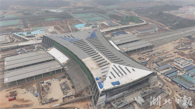 春节期间,湖北日报全媒记者与滑聪一起来到建设中的宜昌北站。从空中看,宜昌北站的站房型式为线侧+高架候车站型,建筑造型酷似“三峡大坝”。车站最高聚集人数5000人,远期高峰小时发送量2942人。