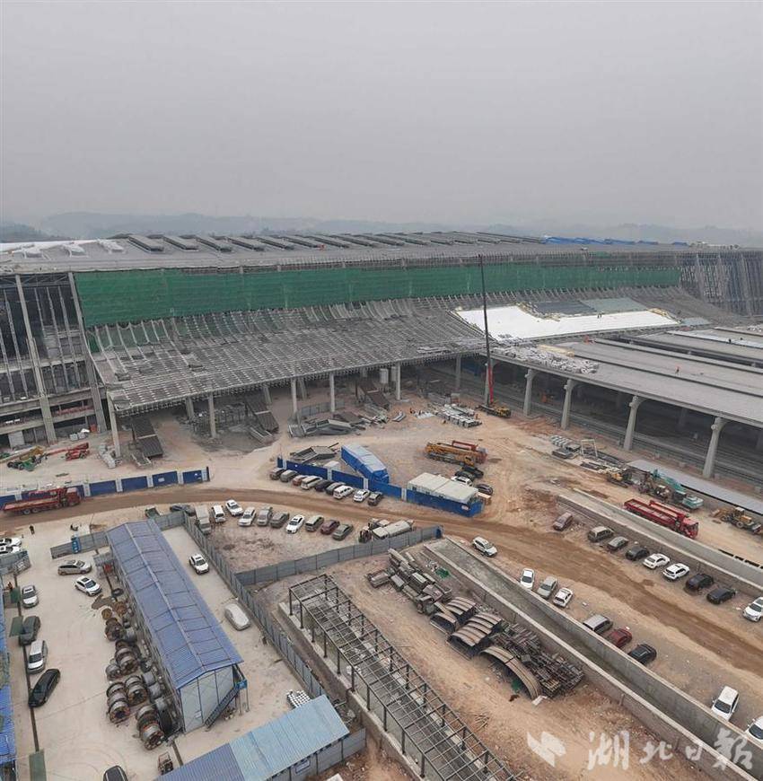 眼下,站房主体结构已经封顶。滑聪和近百名工友留守是为了加快宜昌北站装修进度,确保宜昌北站与沿江高铁武宜段一同在上半年迈入静态验收。