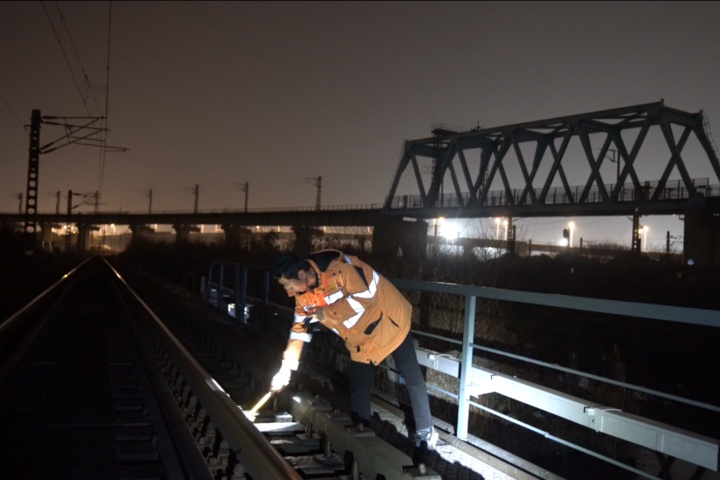 “咚咚咚……”1月29日午夜时分,沪昆铁路到达线上,一位身着黄色工装服的工人正一手拿着手电筒,一手拿着检查锤,为铁路桥梁“辨音诊病”。天亮前,他又匆匆赶回车间办公室,记下当晚的检修情况后,小憩片刻,开启新一天的工作。