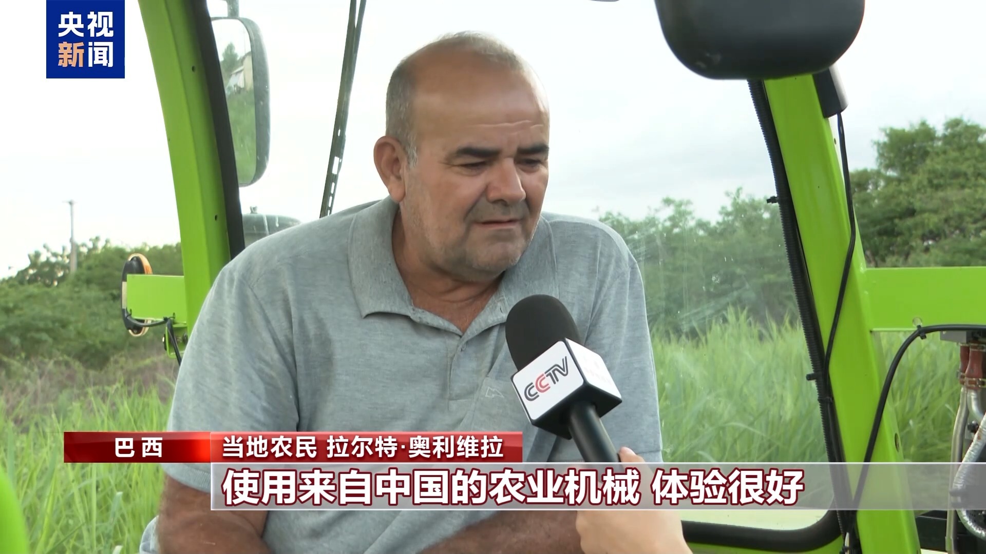 当地农民 拉尔特·奥利维拉:使用来自中国的农业机械,体验很好。因为过去我们是用手来割牧草,如今有了这个收割机,半个小时就完成了。