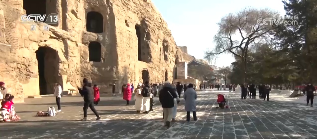 这两天,山西大同的云冈石窟景区迎来客流高峰,景区举办了多场文化活动,处处洋溢着喜庆的节日氛围。