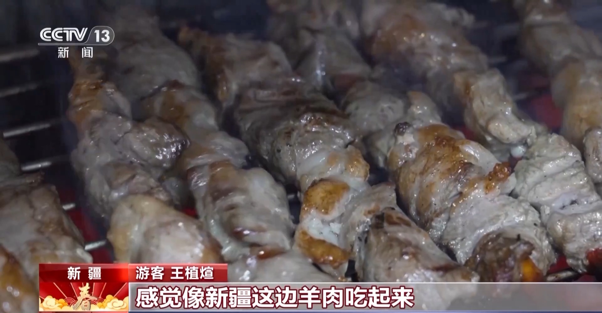 游客 王植煊:我们今天点了红柳烤肉,还有里脊、鸡胗、鸡翅。感觉新疆这边羊肉吃起来,用西北话说就是很扎实。