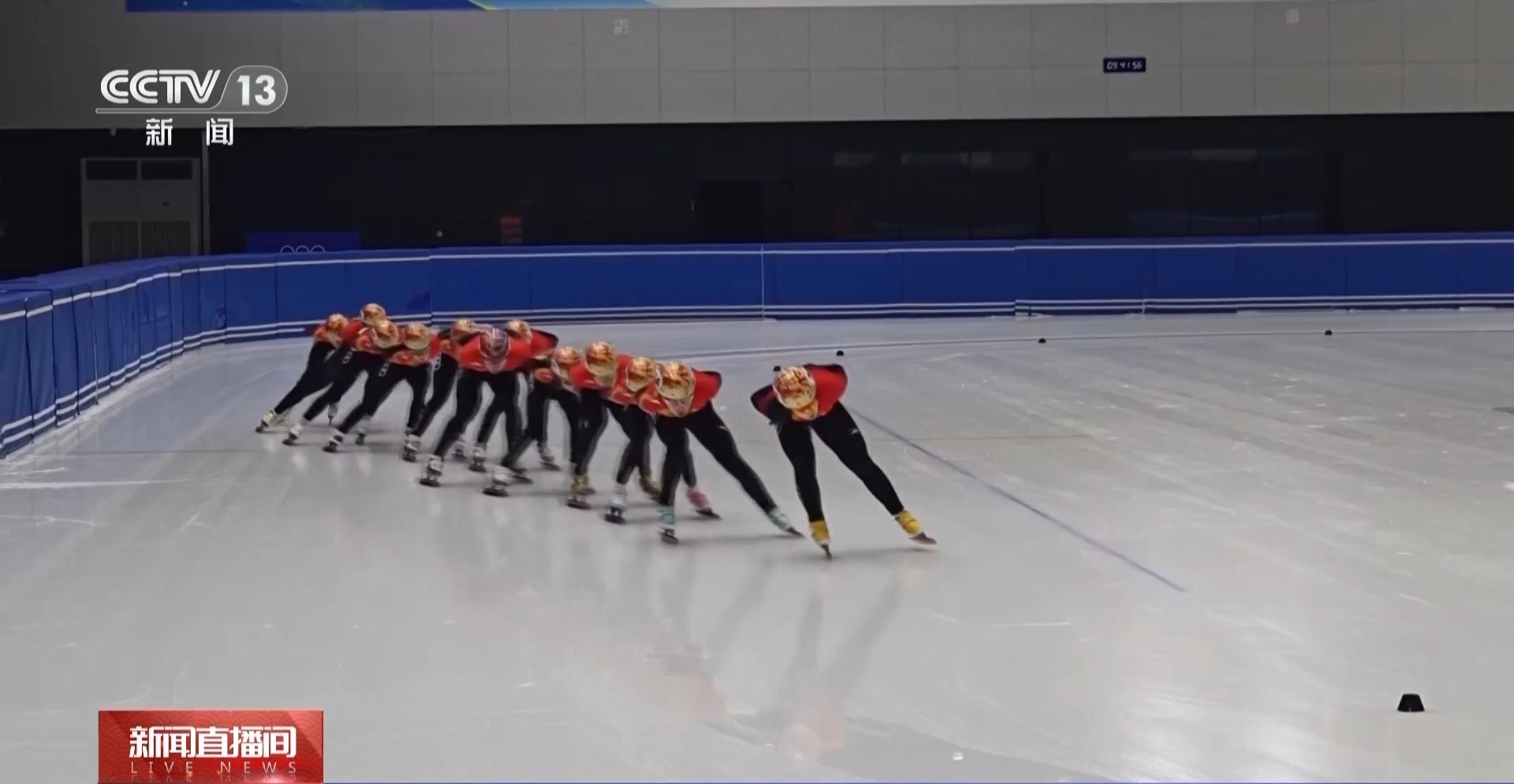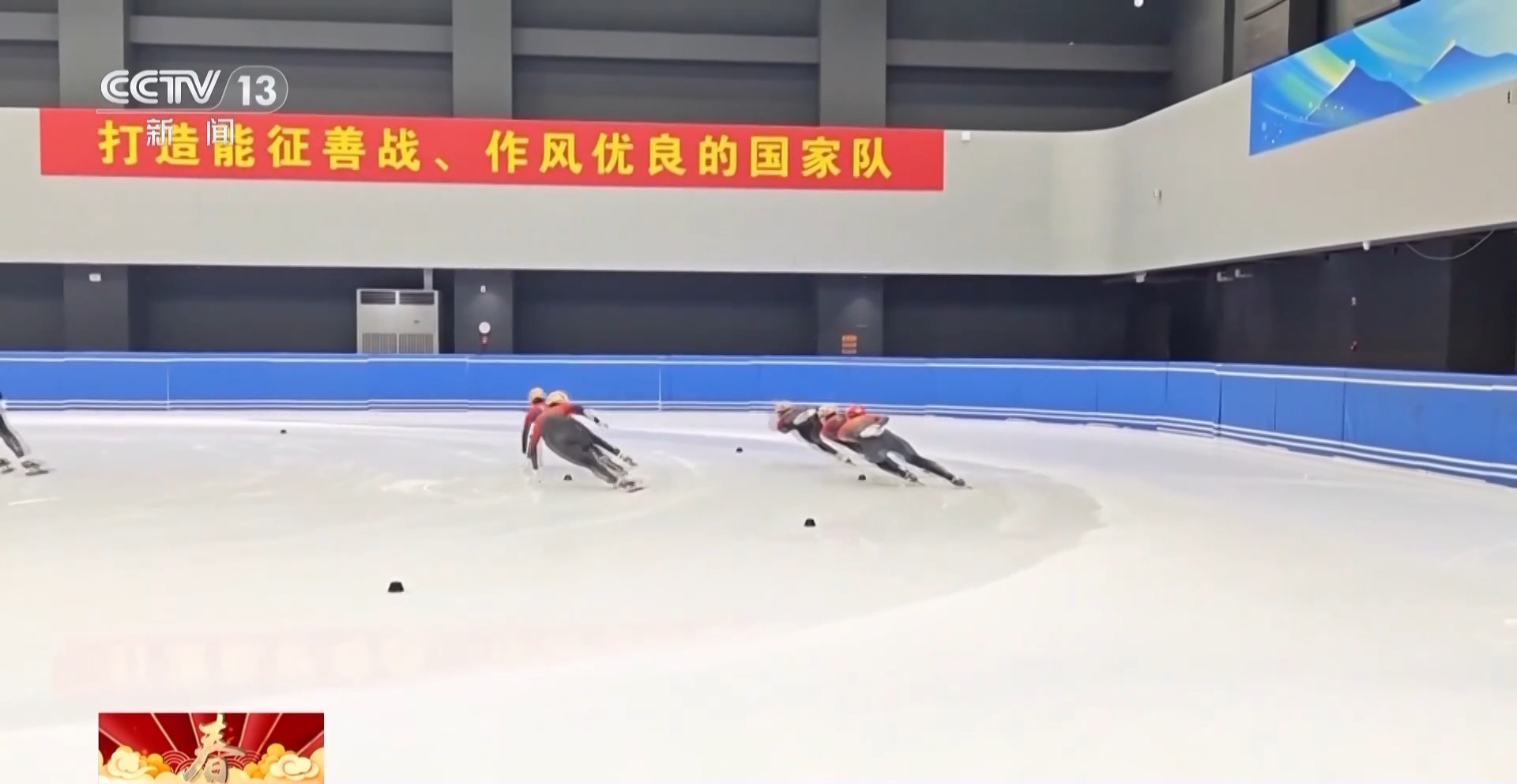 记者来到了冰坛的三楼——中国短道速滑队的训练馆里,队员们正在场上做着当天的训练。