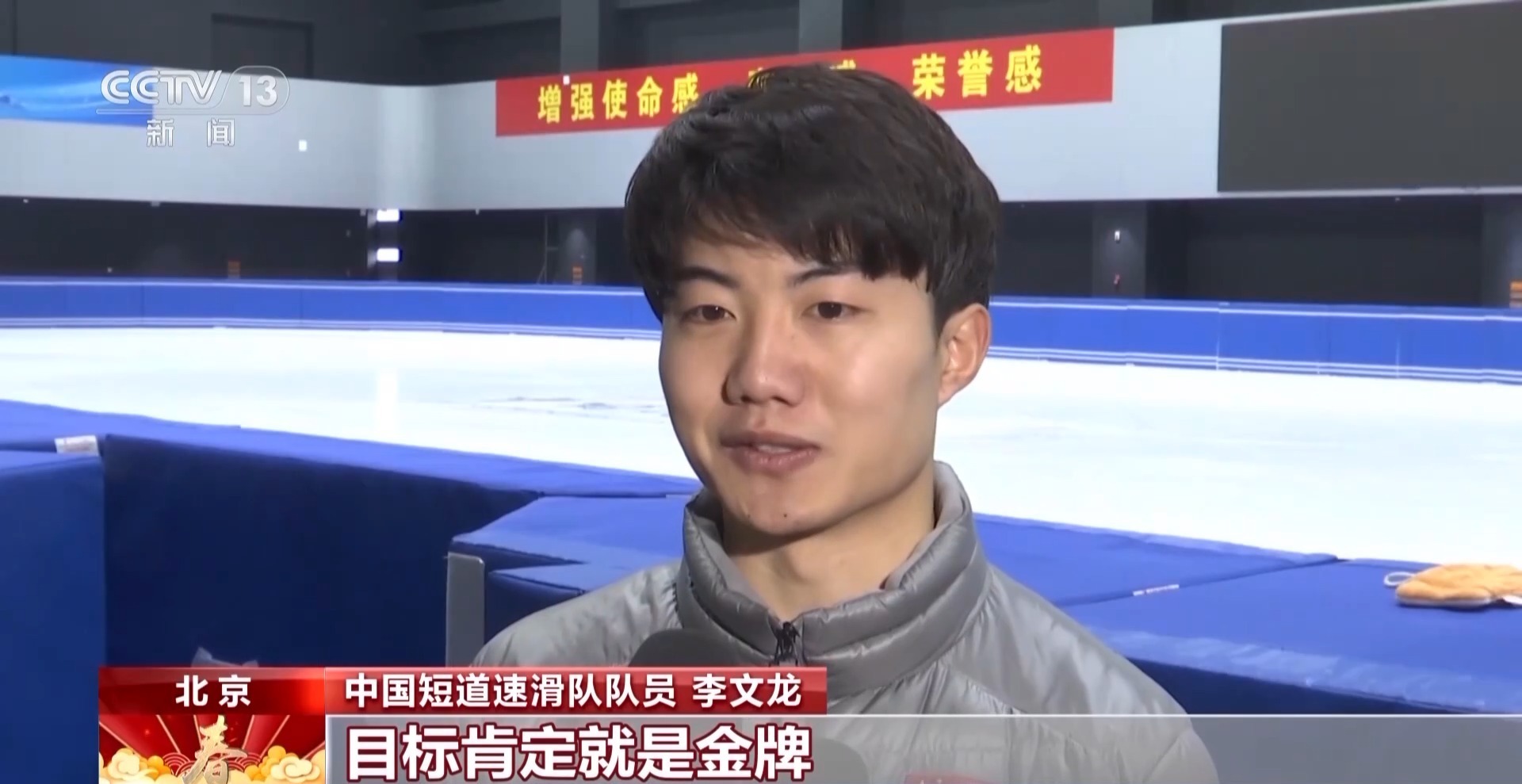 中国短道速滑队队员 李文龙:目标肯定就是金牌,也是在积极备战。我个人来说的话,更看重接力,单项也希望能更有进步,拿到奖牌,甚至金牌。