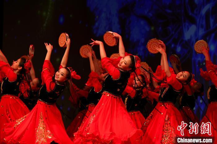 当地时间2月2日,加拿大卡尔加里,当地多个侨团在皇家山大学百乐音乐厅举办“金蛇起舞贺新春”2025乙巳迎春晚会。图为演员们表演舞蹈《巴郎仔》。 中新社记者 余瑞冬 摄