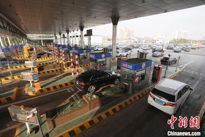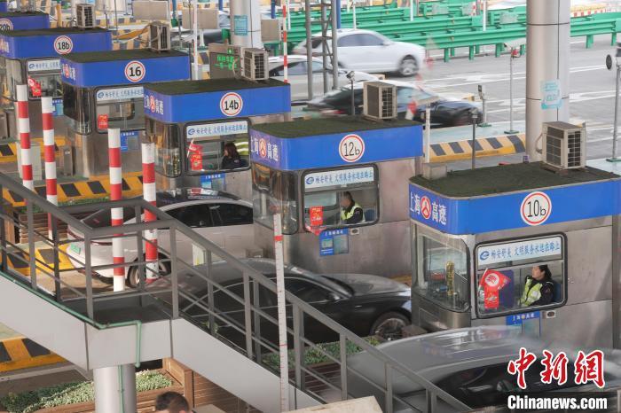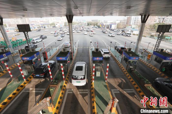 2月3日,春节假期临近尾声,上海各大高速公路入沪方向车流攀升,迎来返程高峰。图为车辆有序通行G2高速公路上海江桥收费站。中新社记者 张亨伟 摄