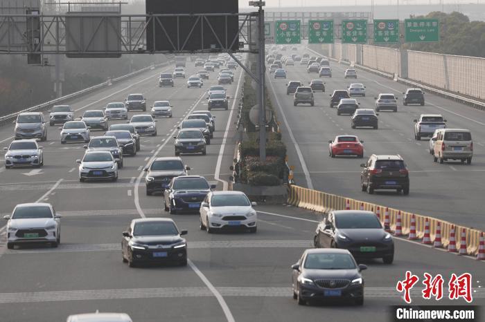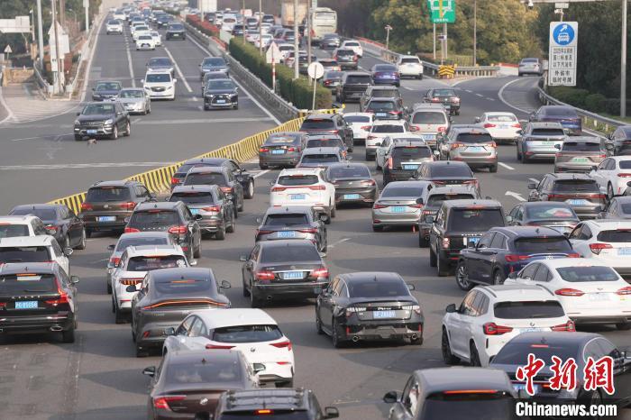 2月3日,春节假期临近尾声,上海各大高速公路入沪方向车流攀升,迎来返程高峰。图为车辆有序通行。中新社记者 张亨伟 摄