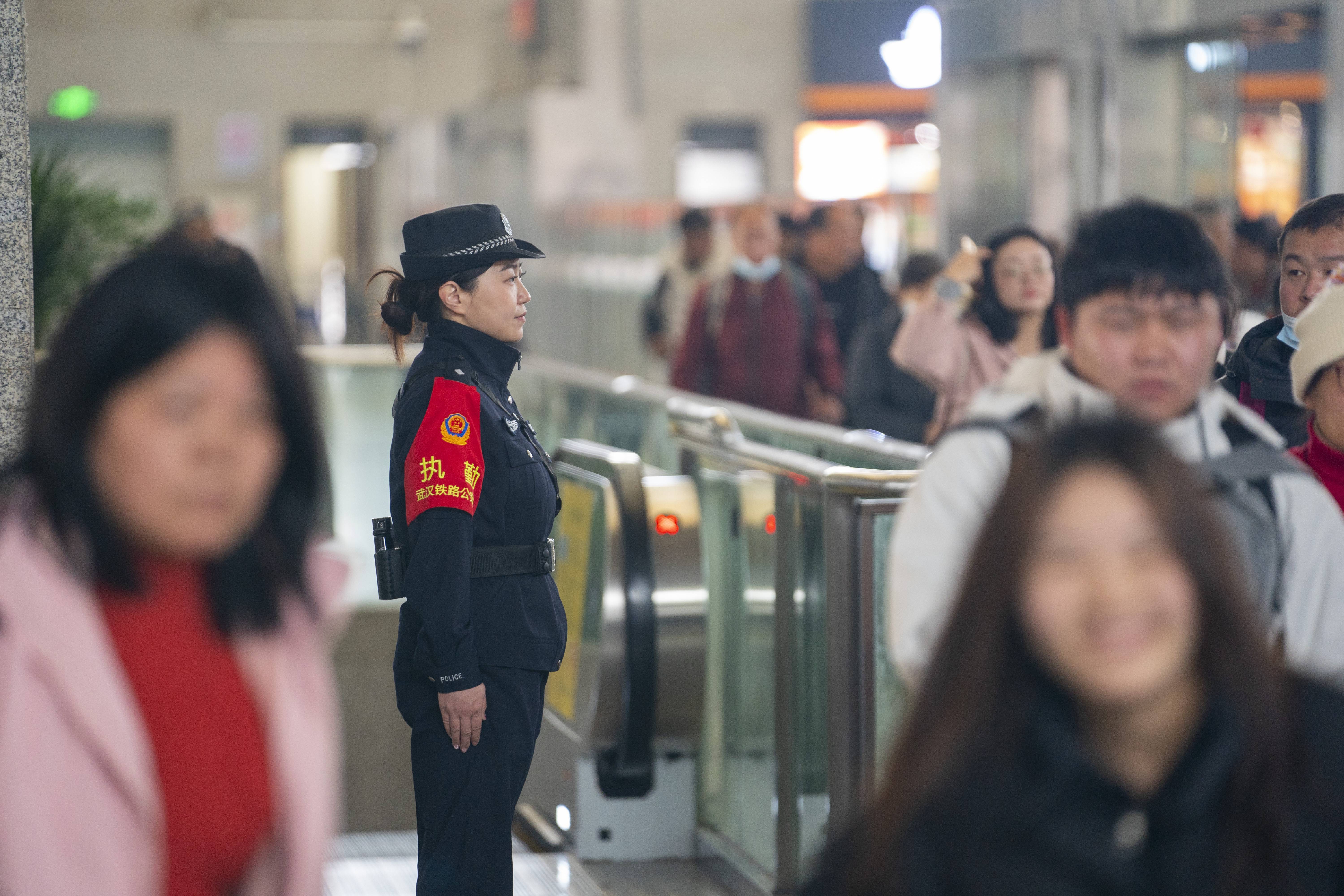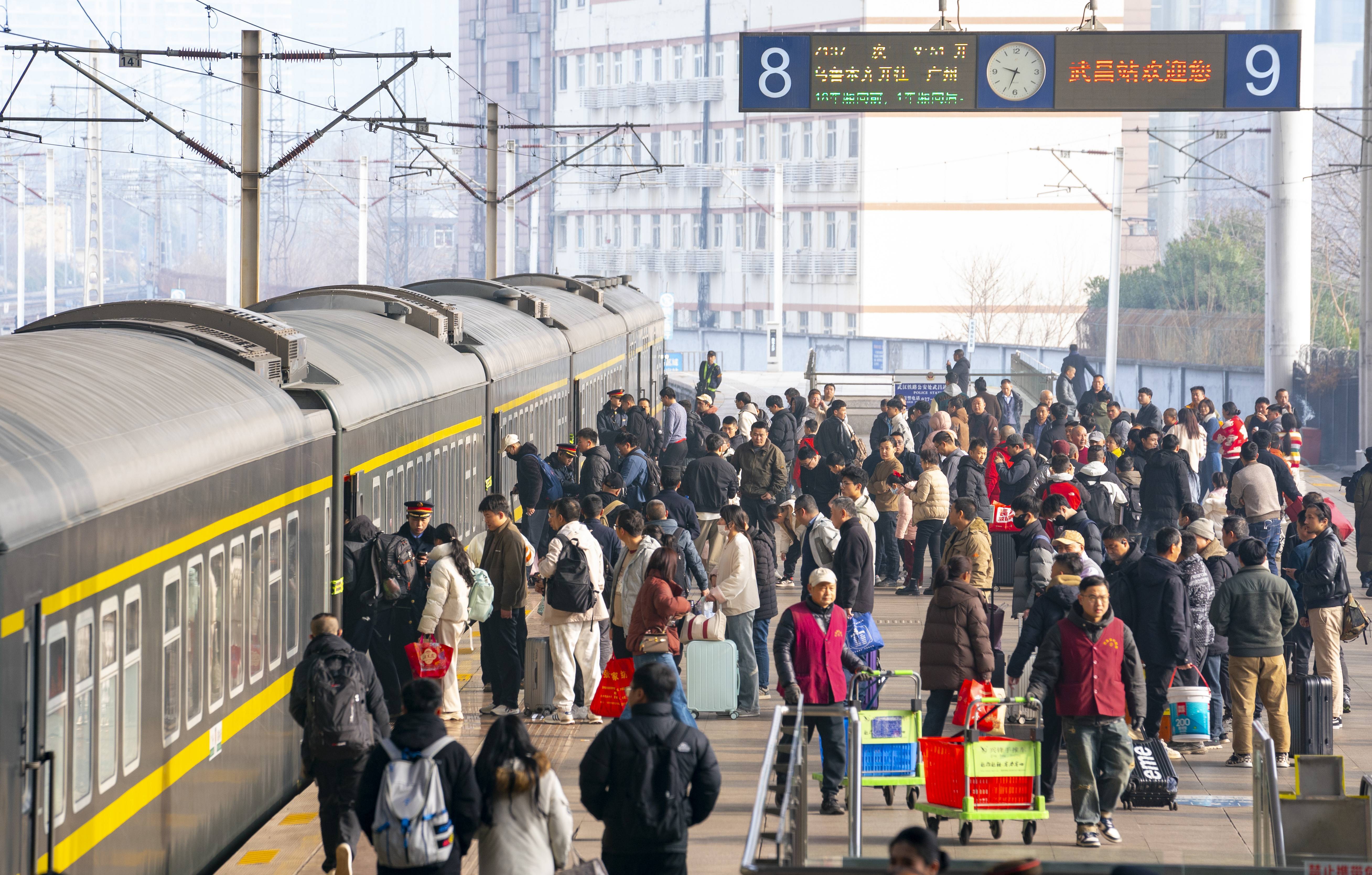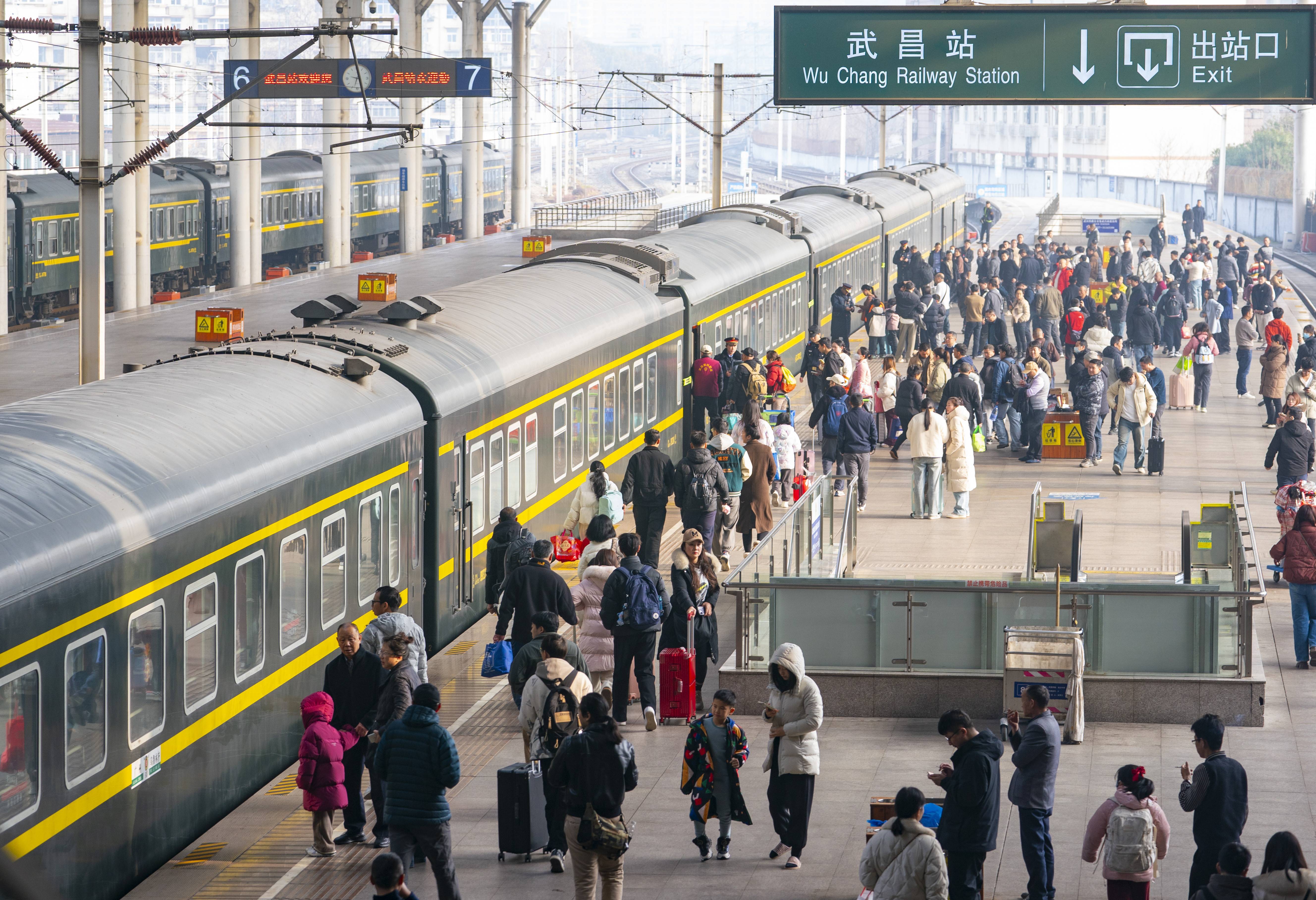 2月3日正月初六,武昌火车站站台,到达旅客有序出站。据预测,2月2日至2月4日,武汉铁路客流客流每天以10万人次的增幅快速攀升。武汉铁路部门积极应对返程客流高峰,加大热门方向运力投放力度,落实便民利民举措,努力保障旅客平安、有序、温馨出行。武汉铁路公安机关紧盯重点客运车站、重点列车、重点时段,科学合理部署警力,加强进站口、安检口、出站口等重点区域的巡逻检查。
