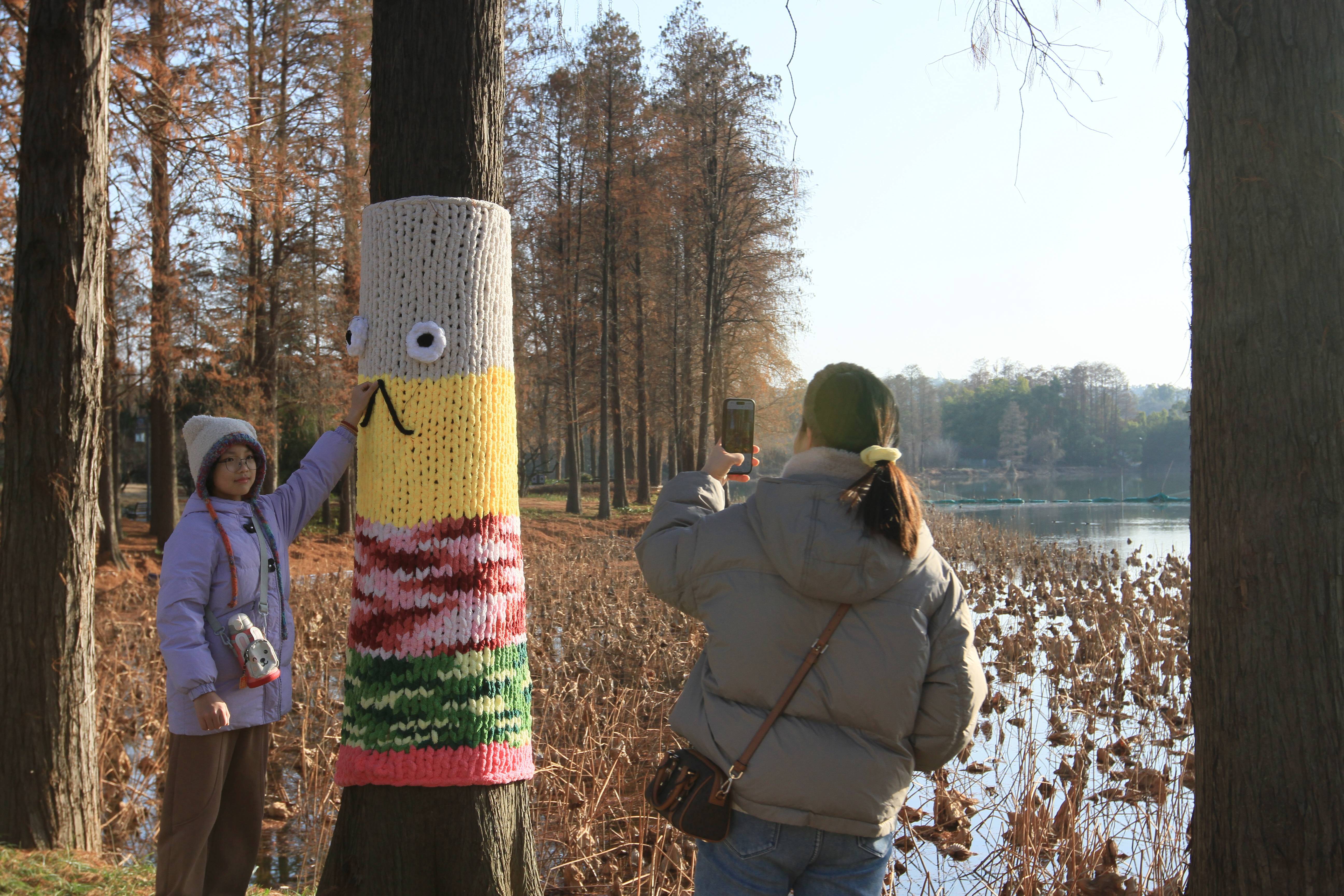 过年期间,不仅有梅花,还有多处人文景观值得一看。今年梅园上新了“雪海寻香”“梅花观止”“雾里探梅”等十处梅花相关打卡点,沿湖两侧的杉树穿上了“多巴胺”毛衣,打破了冬日的沉闷,让杉树显出别样生机。经过装点的梅园成为一座闹中取静的半山公园,年轻游客穿着汉服拍照合影。