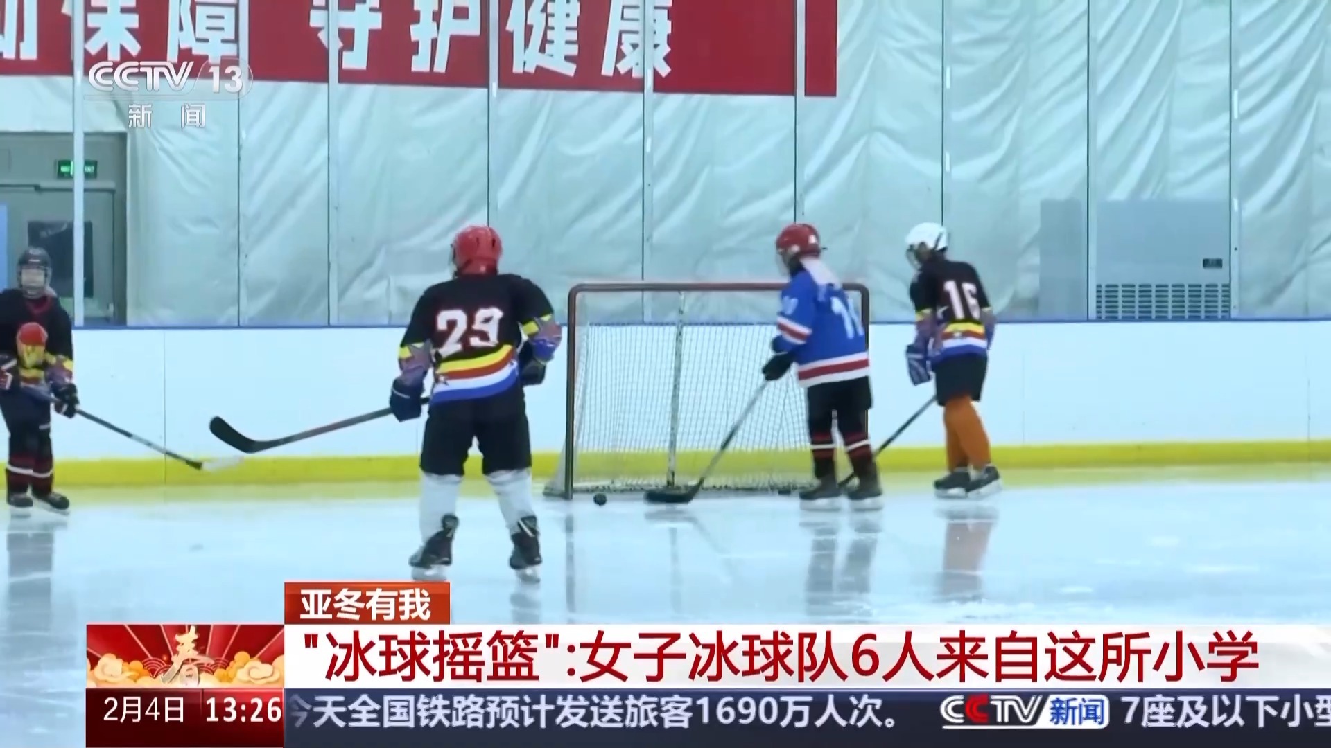 这是哈尔滨市南城第一小学校的少儿女子冰球队训练现场。在第九届亚洲冬季运动会中国女子冰球队参赛队员里,有六名都来自这所学校。