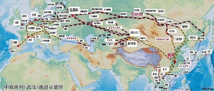 中欧班列(武汉)通道示意图