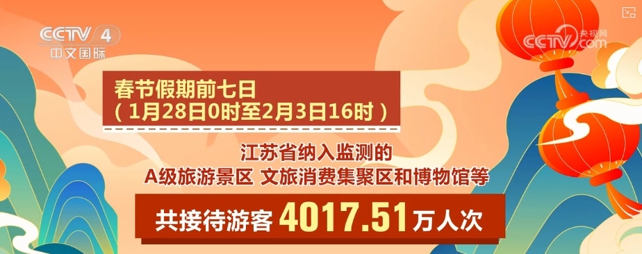 春节假期前七天,江苏省纳入监测的A级旅游景区、文旅消费集聚区和博物馆等多地共接待游客4017.51万人次。