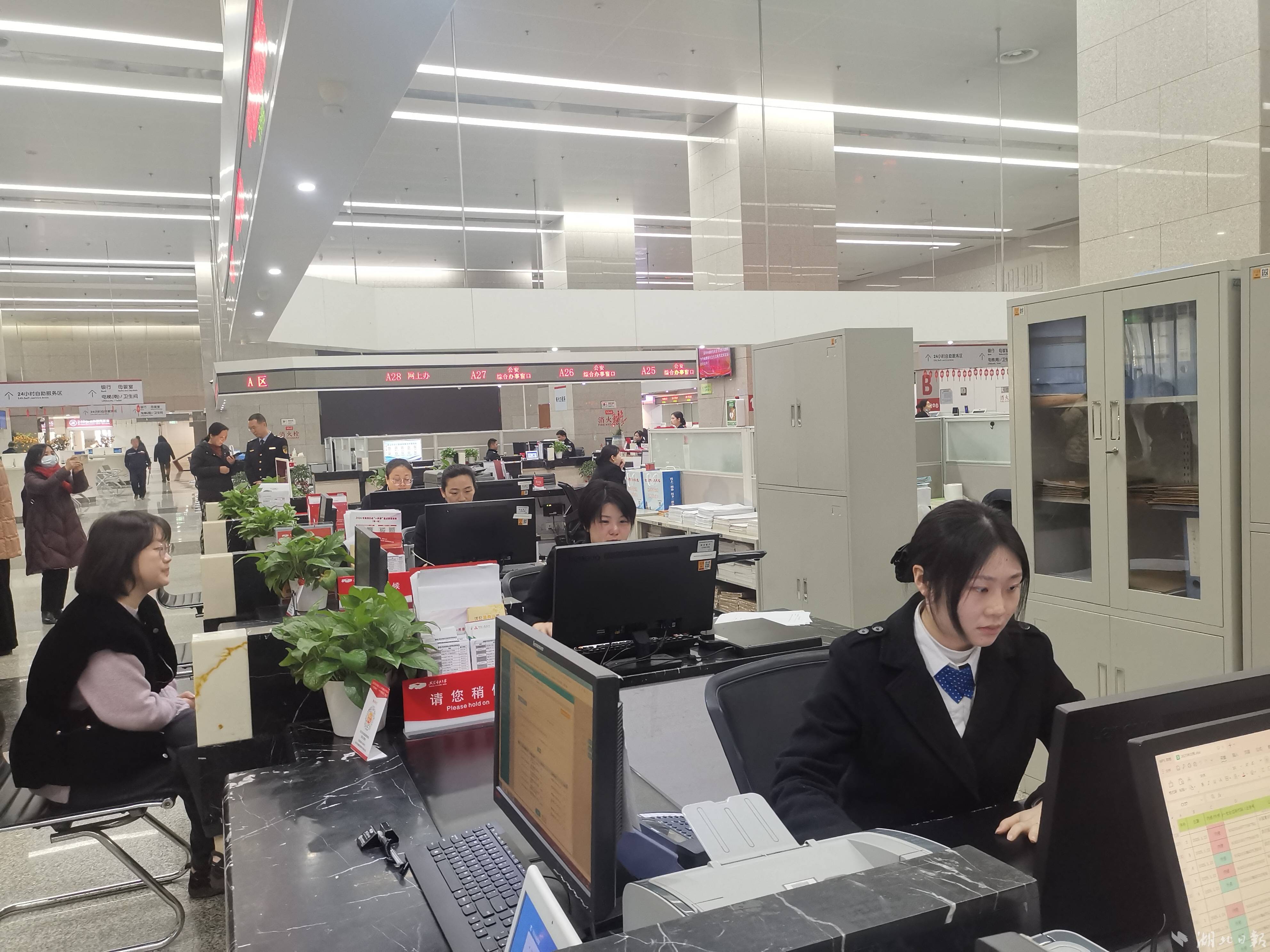 2月5日,蛇年春节假期后的首个工作日,武汉市民之家,大厅工作人员着装整齐,精神饱满,为前来办事的企业、群众提供悉心服务。