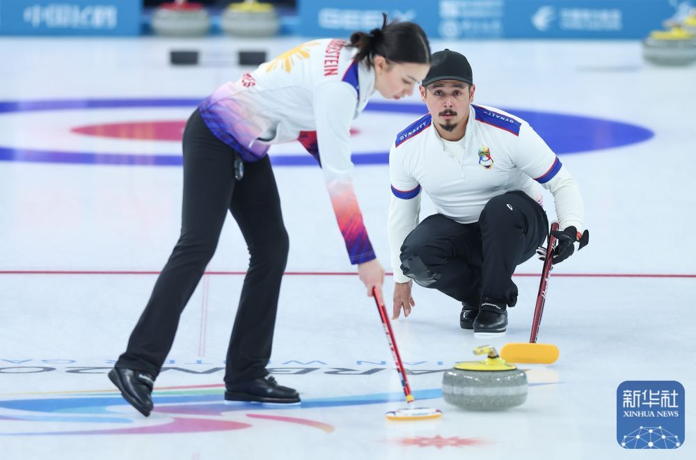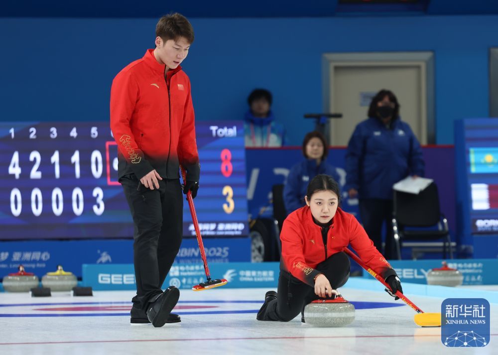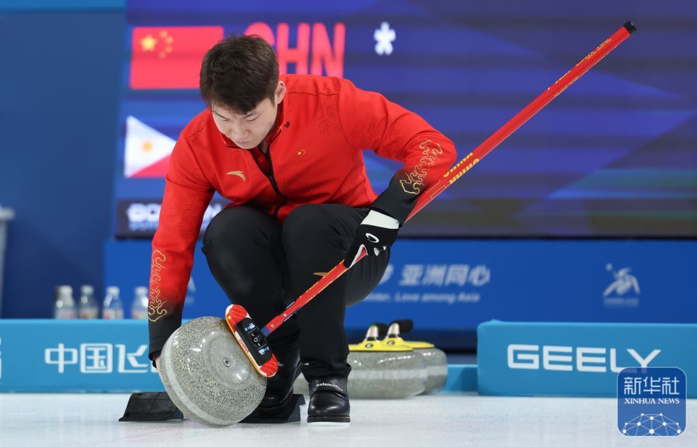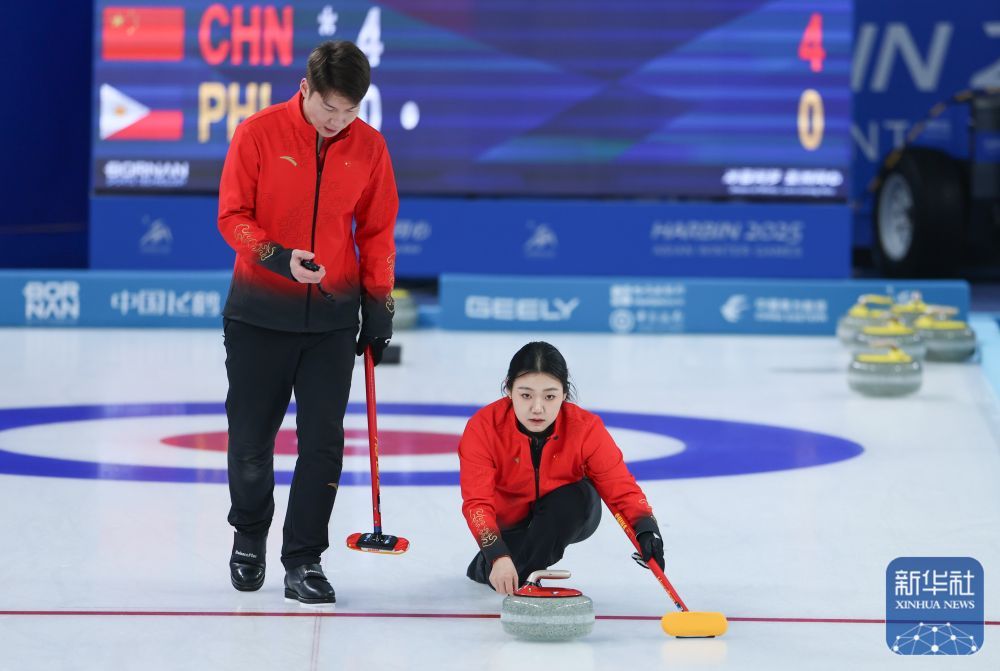 2月5日,在哈尔滨举行的第九届亚冬会冰壶混双循环赛B组第5轮比赛中,中国队9比6战胜菲律宾队。