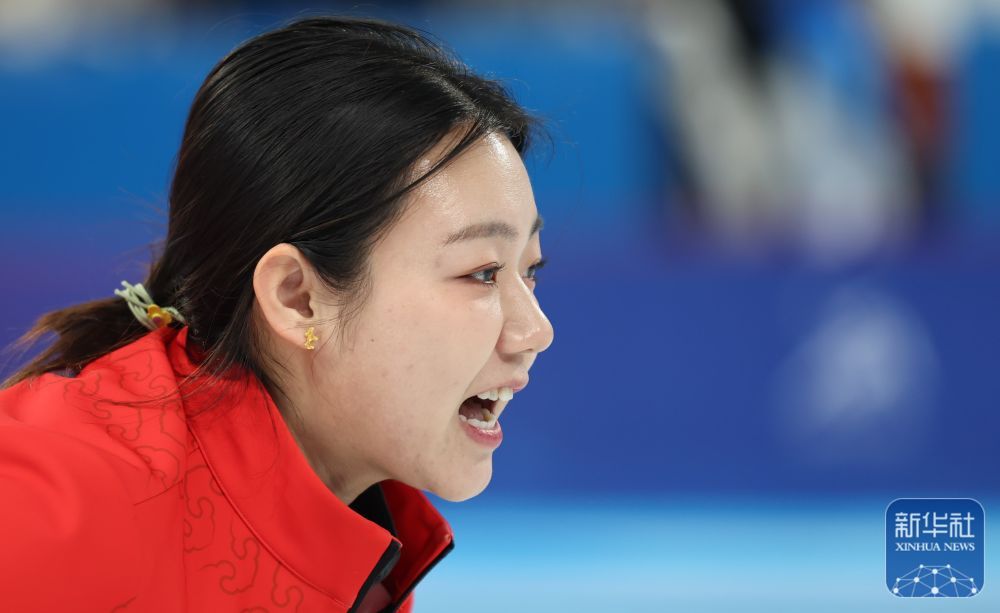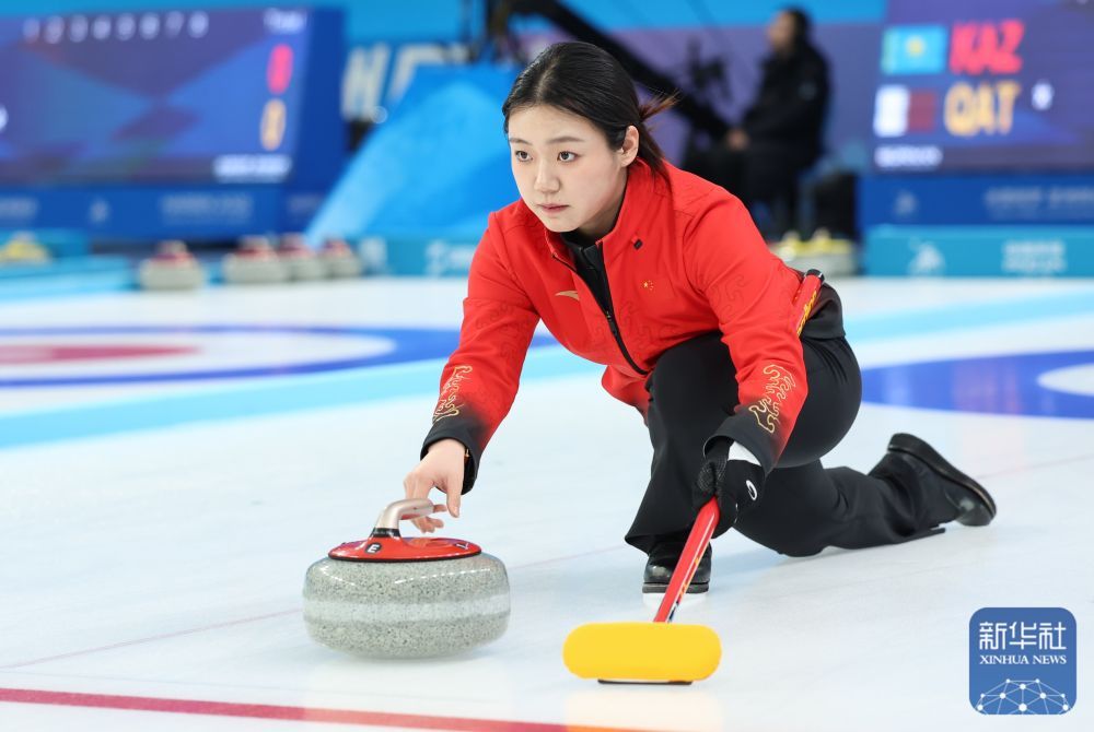 ↑2月5日,中国队选手韩雨在比赛中掷壶。