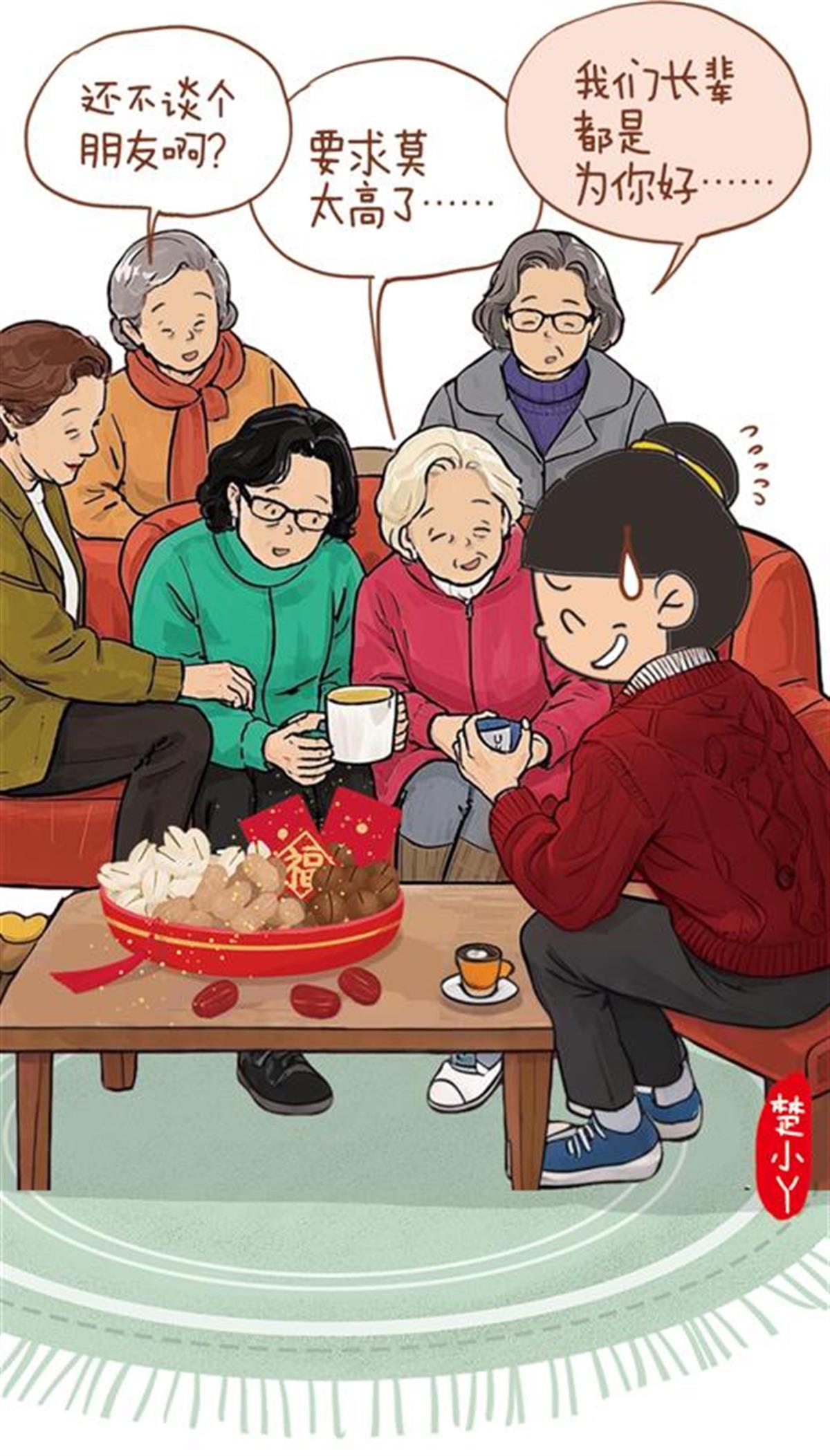 楚小丫:蛮开心!除了有几个亲戚一个劲催我谈朋友,让我有一点嘎烦,别的都蛮好。