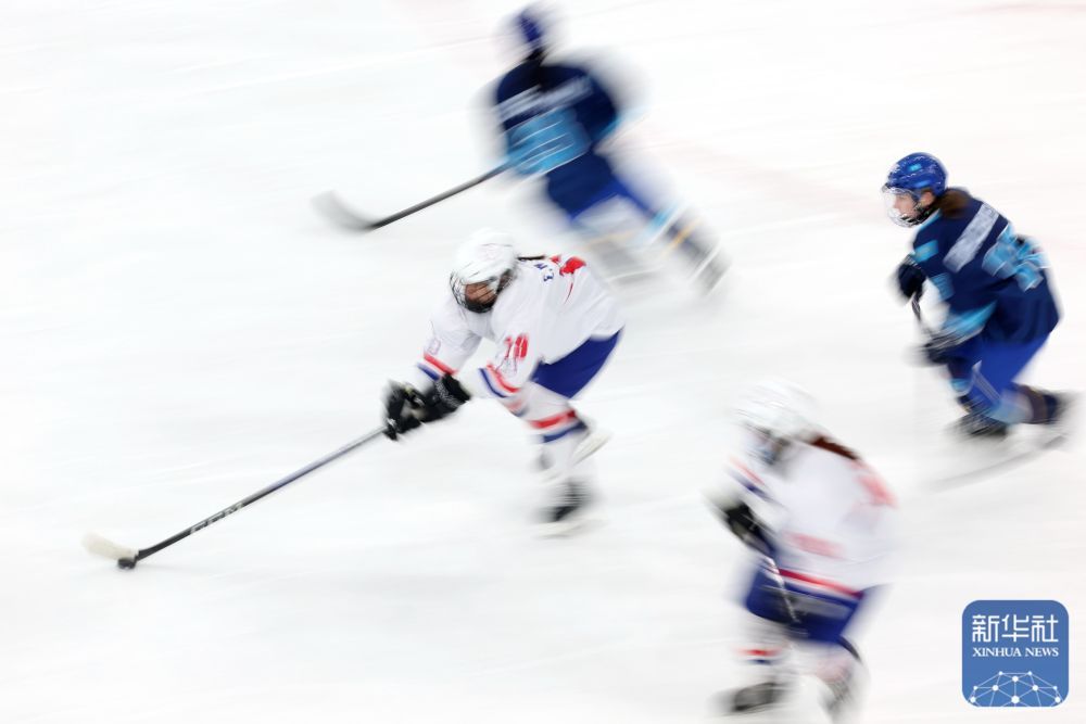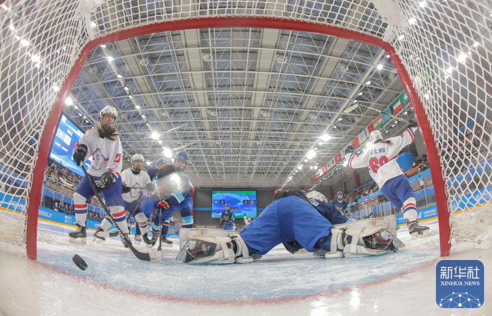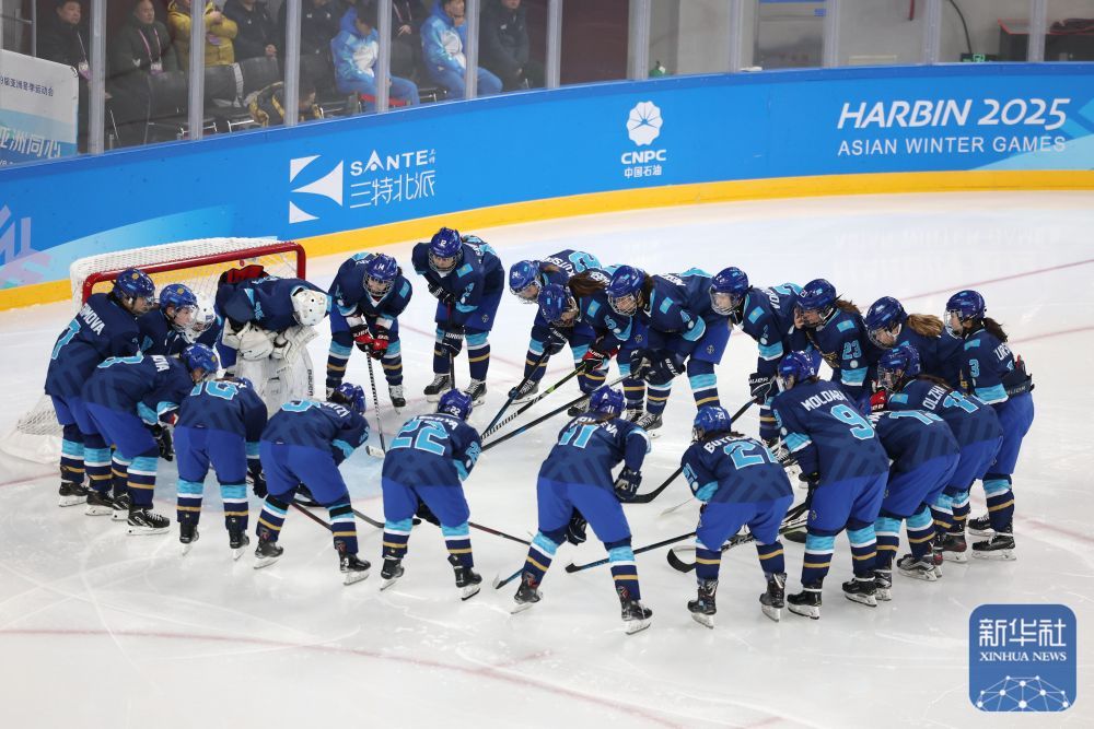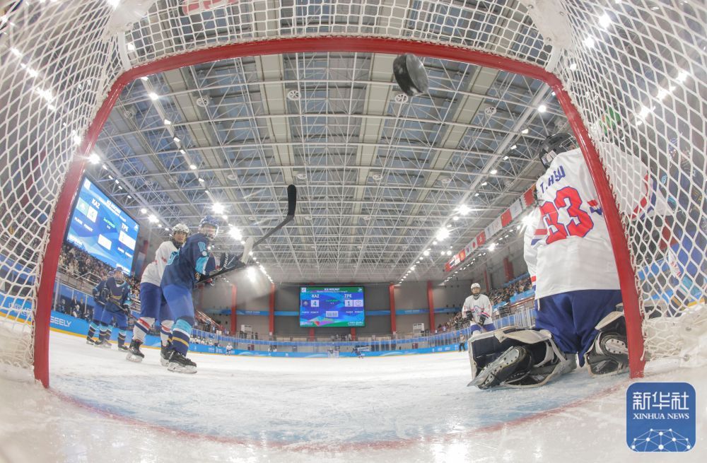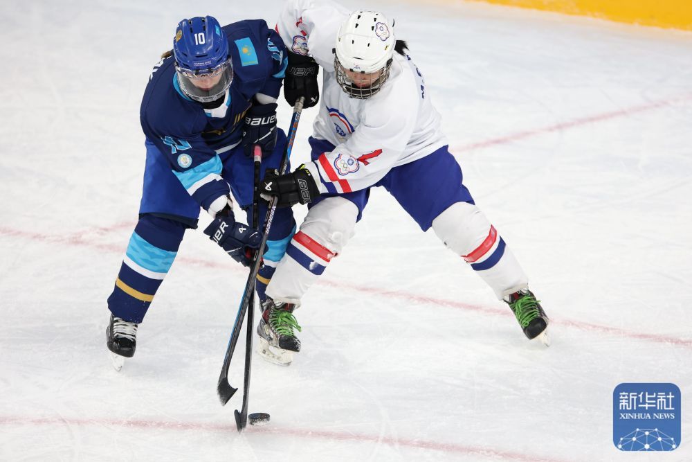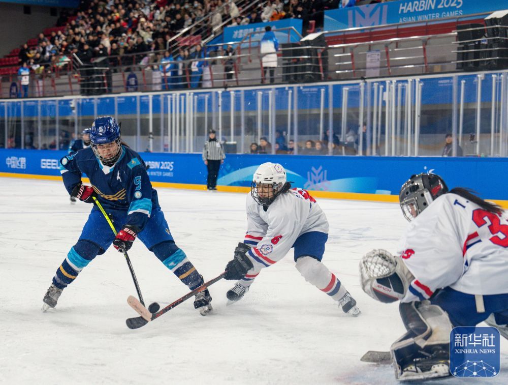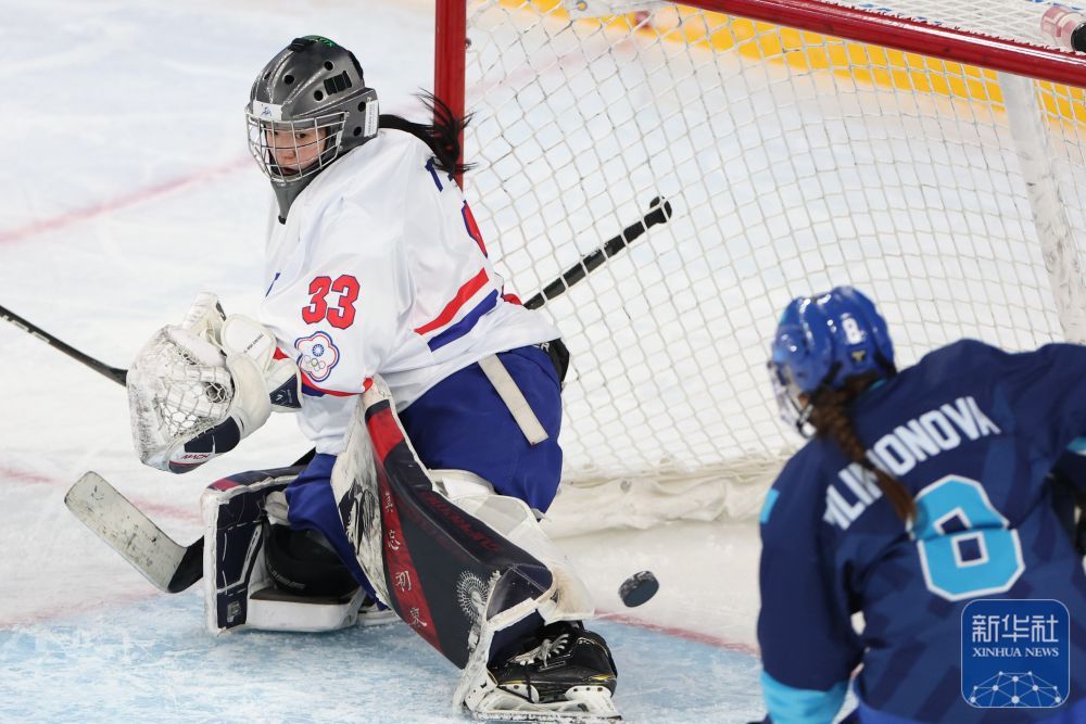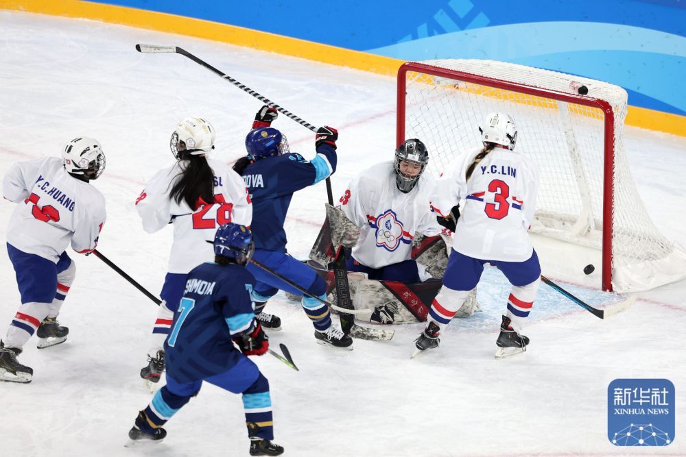 2月6日,在哈尔滨体育学院大学生滑冰馆举行的2025年第九届亚冬会女子冰球小组赛B组比赛中,中国台北队1比5不敌哈萨克斯坦队。