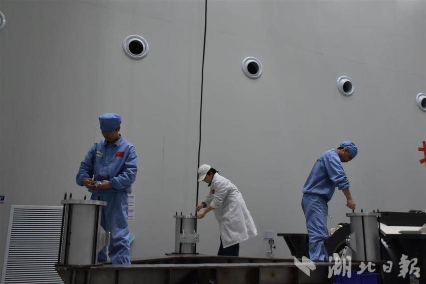 步入生产车间,航天科工二院空间工程总体部工艺师梁琪和同事,在为卫星振动试验进行设备组装。车间另一侧,大年初四就赶回武汉的工作人员,正紧盯电脑屏幕,为卫星总装、集成调试做准备。