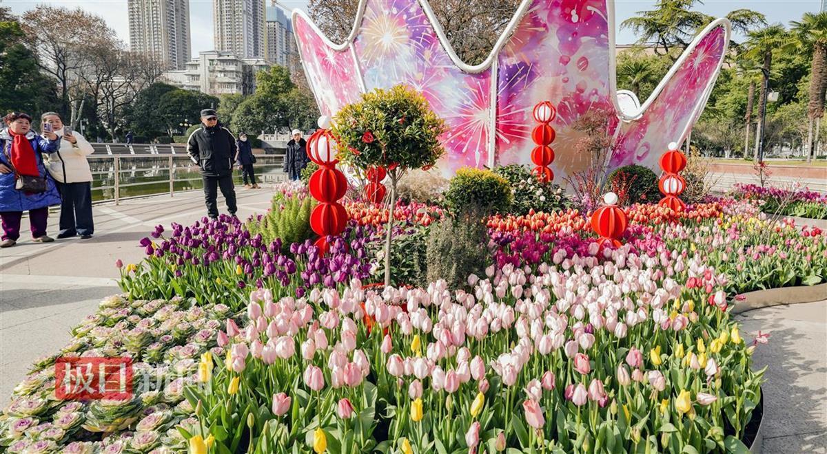 2月7日,市民游客纷纷踏足武汉中山公园,观赏郁金香迎春怒放的美景,感受新春的喜悦和勃勃生机。