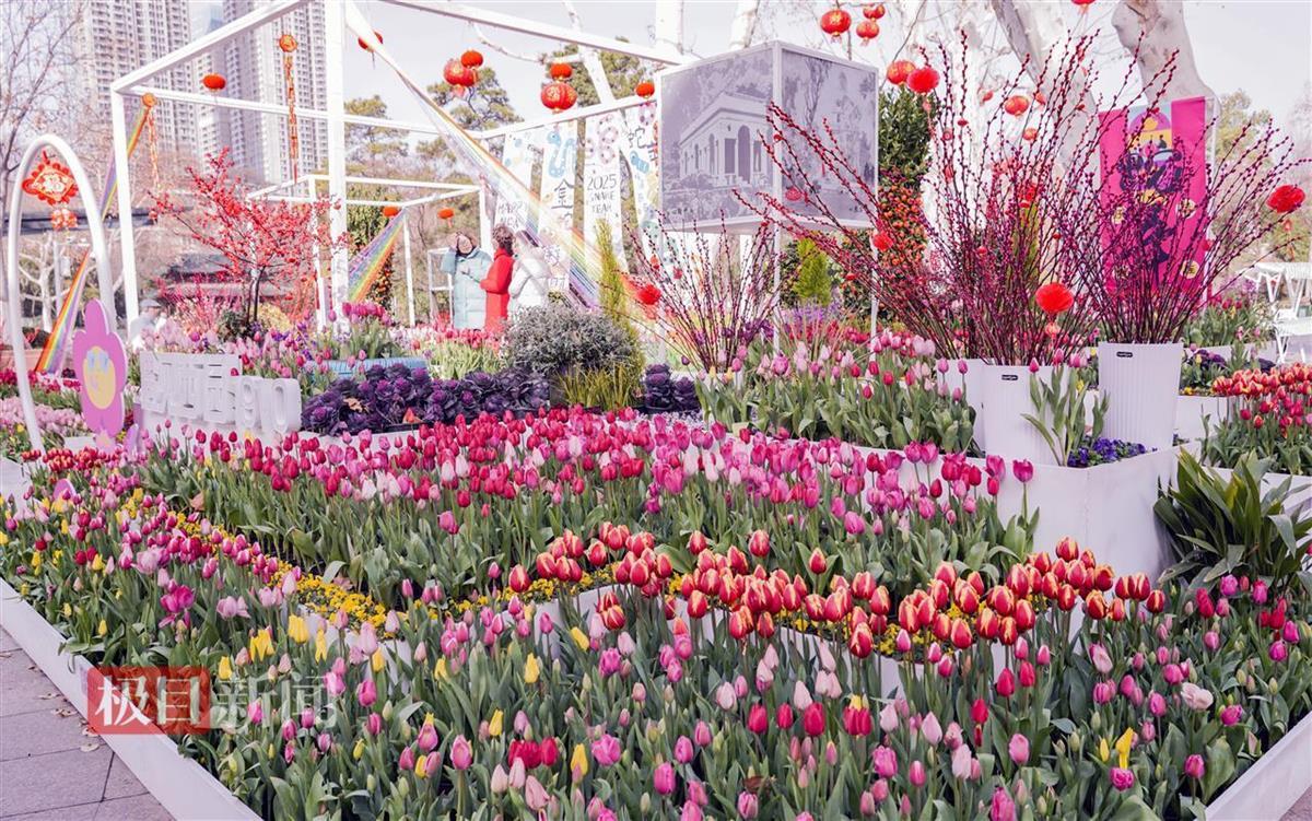 这个春节期间,汉口中山公园近20个品种、共4万株郁金香迎春开放,公园处处色彩缤纷、花香四溢,武汉人的春节浪漫多彩。