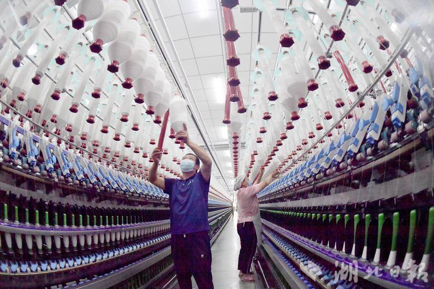 2月8日,湖北金恒昌纺织公司司细纱车间工人在更换纱锭。新年伊始,该公司开足马力跑订单抢生产,奋力实现首季“开门红”。目前该公司已实现年产坯布1.1亿米,坯布产量在鄂西北地区处于前列,产品主要售往浙江、广东、江苏、山东等地,海外市场外销非洲、南美、中东和东南亚等国家。(视界网 安富斌 摄)