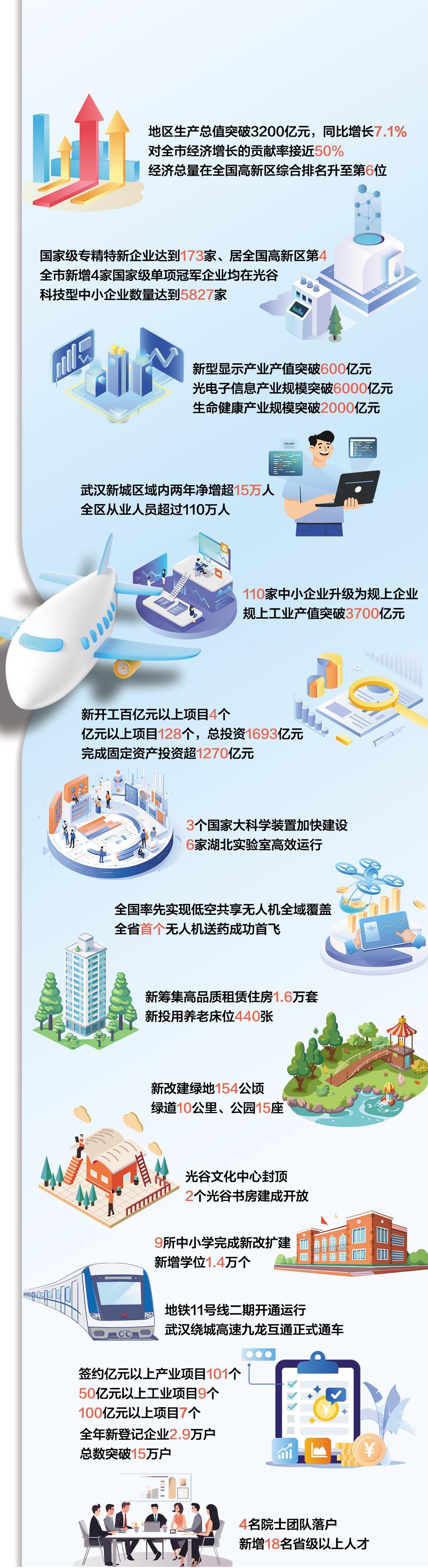 据悉,2024年,光谷发展态势焕然一新,地区生产总值超过3200亿元,增长7.1%,经济总量占省、市比重分别提升至5.3%和15.2%。