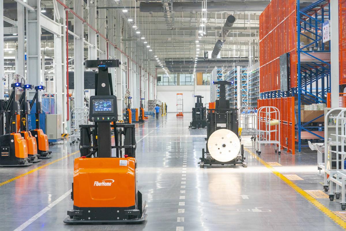 烽火通信数字工厂完成数字化改造后,智能产线和5G机器人成为生产主力军。 (湖北日报全媒记者 魏铼 摄)