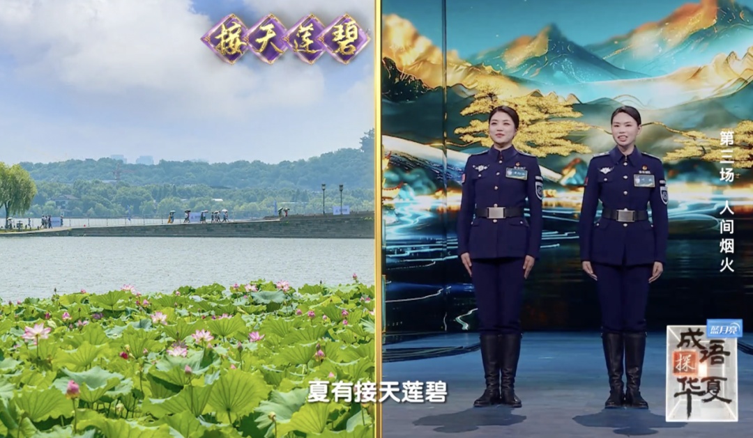 来自西湖女子巡逻队的叶校和黄约涵绘声绘色地描述了“西湖里的成语”。