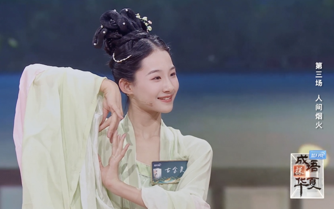 节目中,来自北京的初中生古金灵以翩翩舞姿活灵活现地展现了“舞蹈里的成语”。