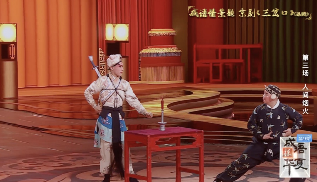 生活既要注重当下,也要向往诗与远方。在古人的世界里“衣食住行”是现实当下,而戏曲则是平常生活中极为珍贵的“诗与远方”。《成语探华夏》第三期节目在保持以往节目环节的基础之上创造性地加入了戏曲与美食的元素。京剧《三岔口》(选段)的演绎让我们看到了成语对于戏曲中角色装扮和武打动作的精准描述;冬瓜、扇贝、牛舌等简单的食材乃至于最平常的窝窝头,皆完美诠释了“食不厌精,脍不厌细”的深刻内涵;“一帆风顺”“一言九鼎”“完璧归赵”这些“成语菜”是人们对生活的希冀与成语完美融合,成语里的烟火人间更有味道,也让节目碰撞出别样的光彩。