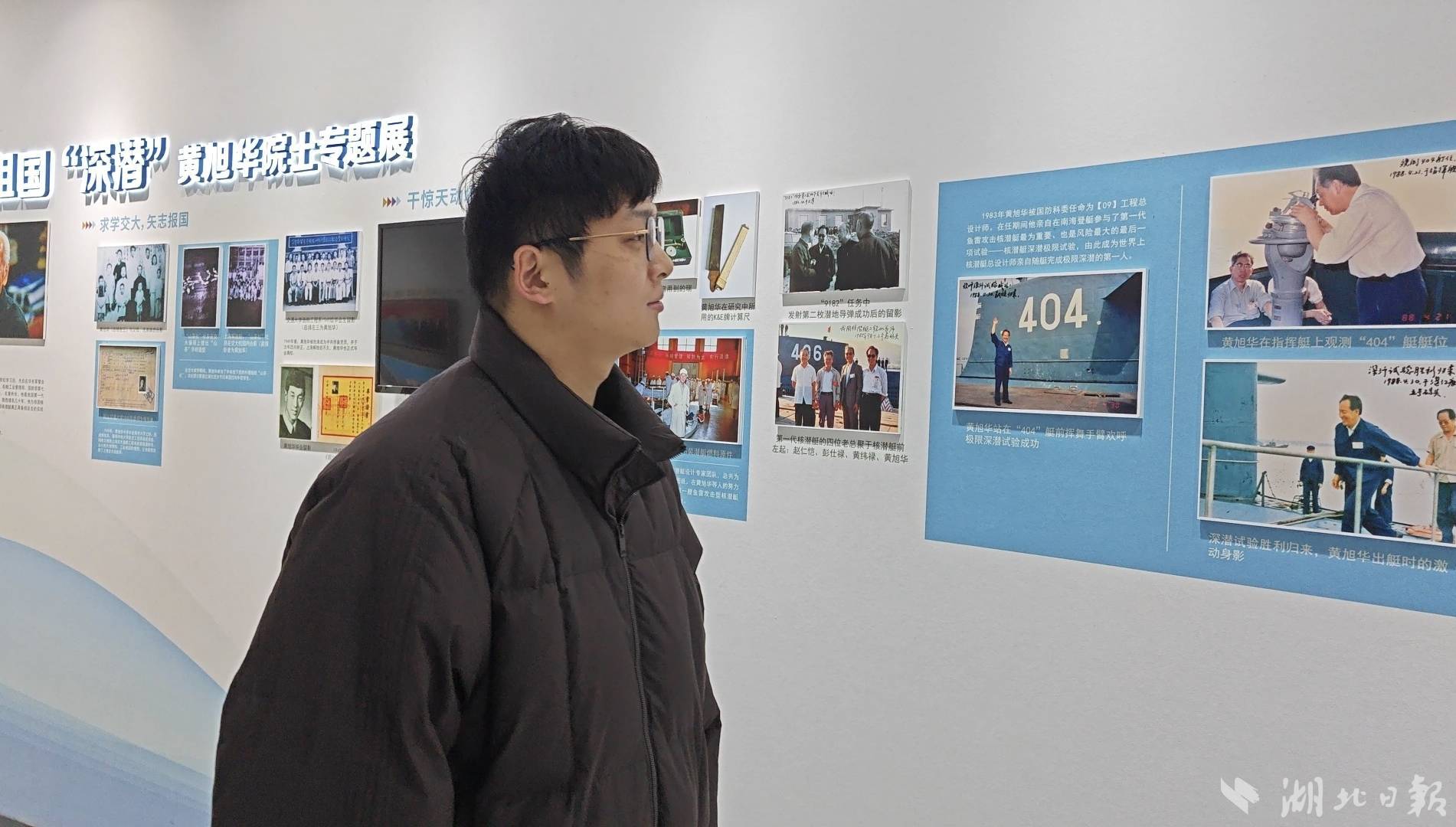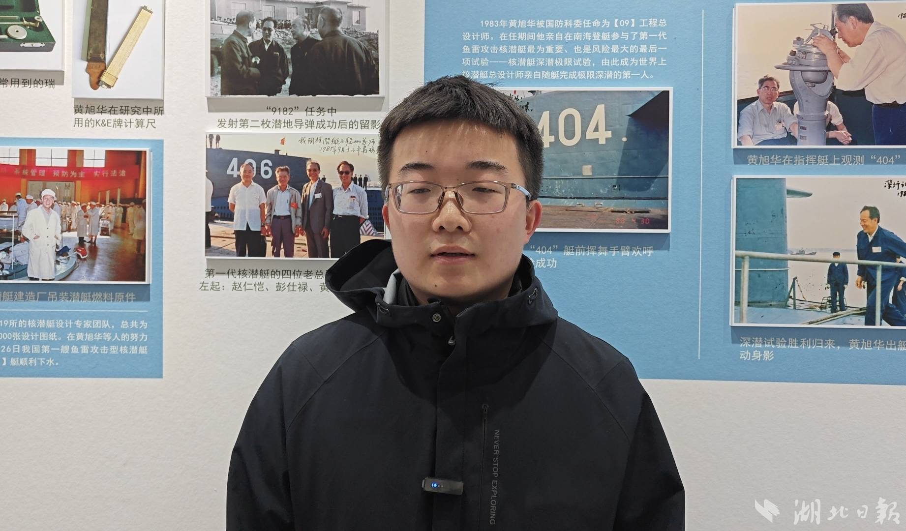 “黄老一生隐姓埋名,为中国的核潜艇事业鞠躬尽瘁。作为船建学院的学生,希望我们也能学习黄老甘于奉献的精神,潜心钻研,努力为国家作贡献。”船建学院2024级博士研究生庞正阳在专题展的大幅黄老照片前深深鞠躬,并献上鲜花。