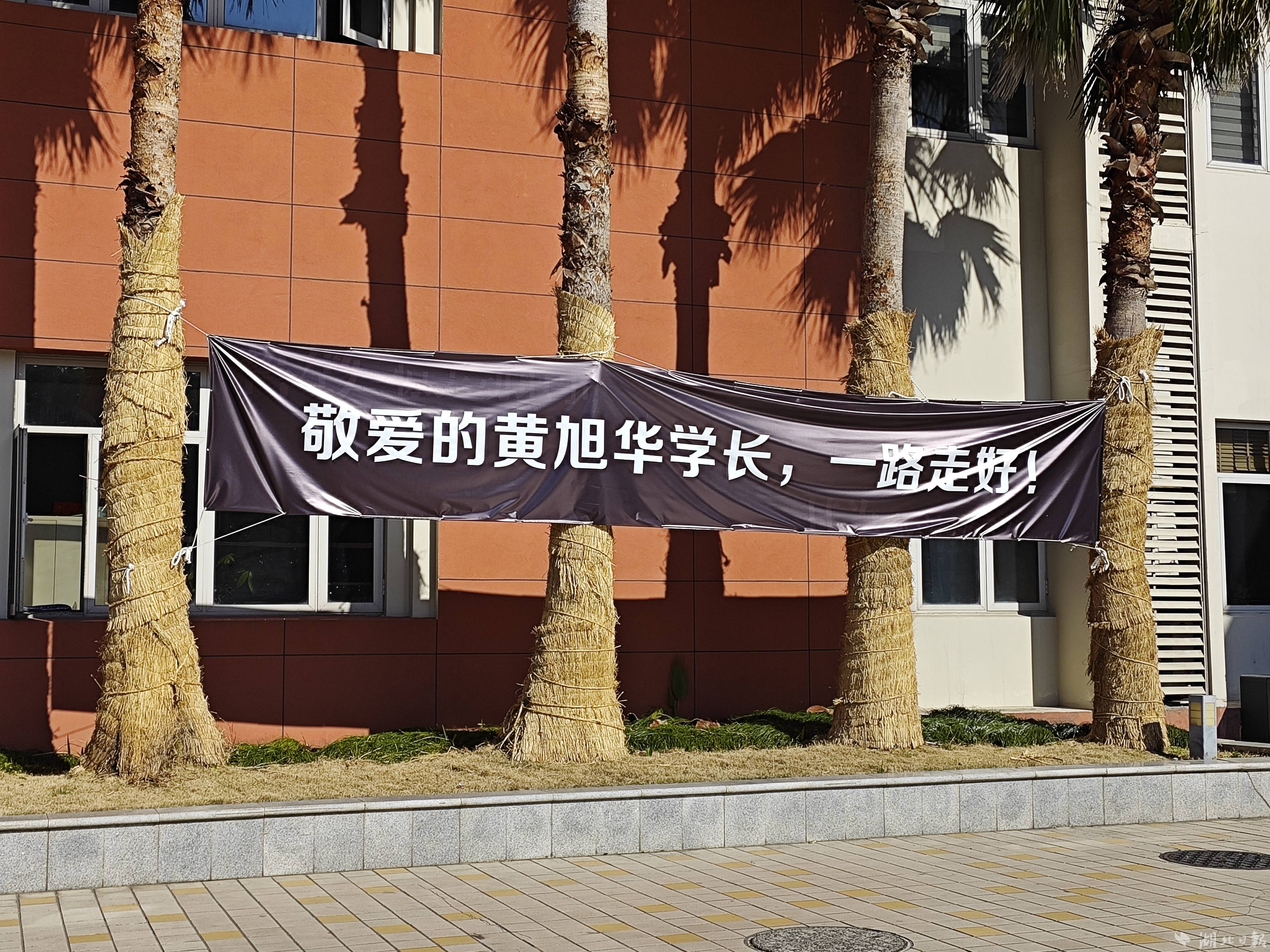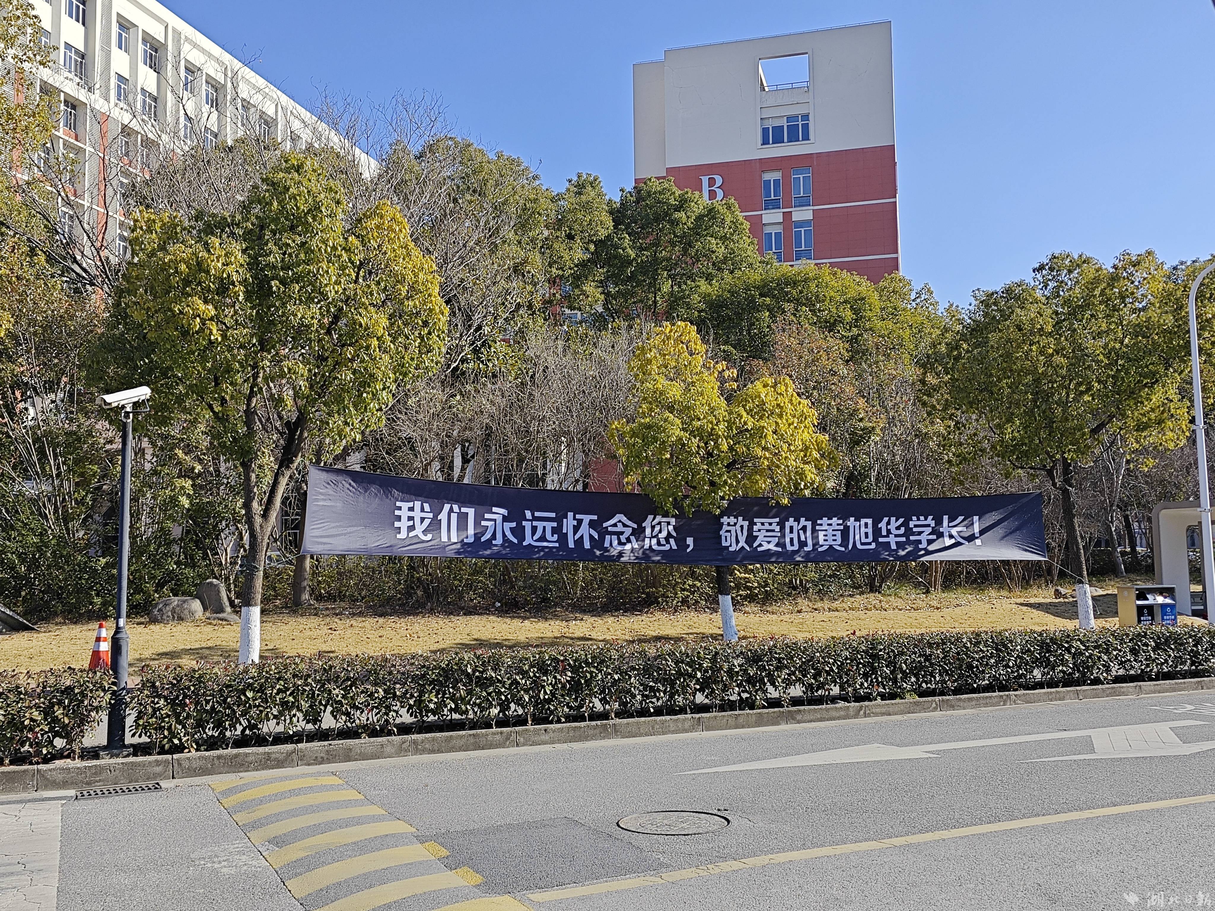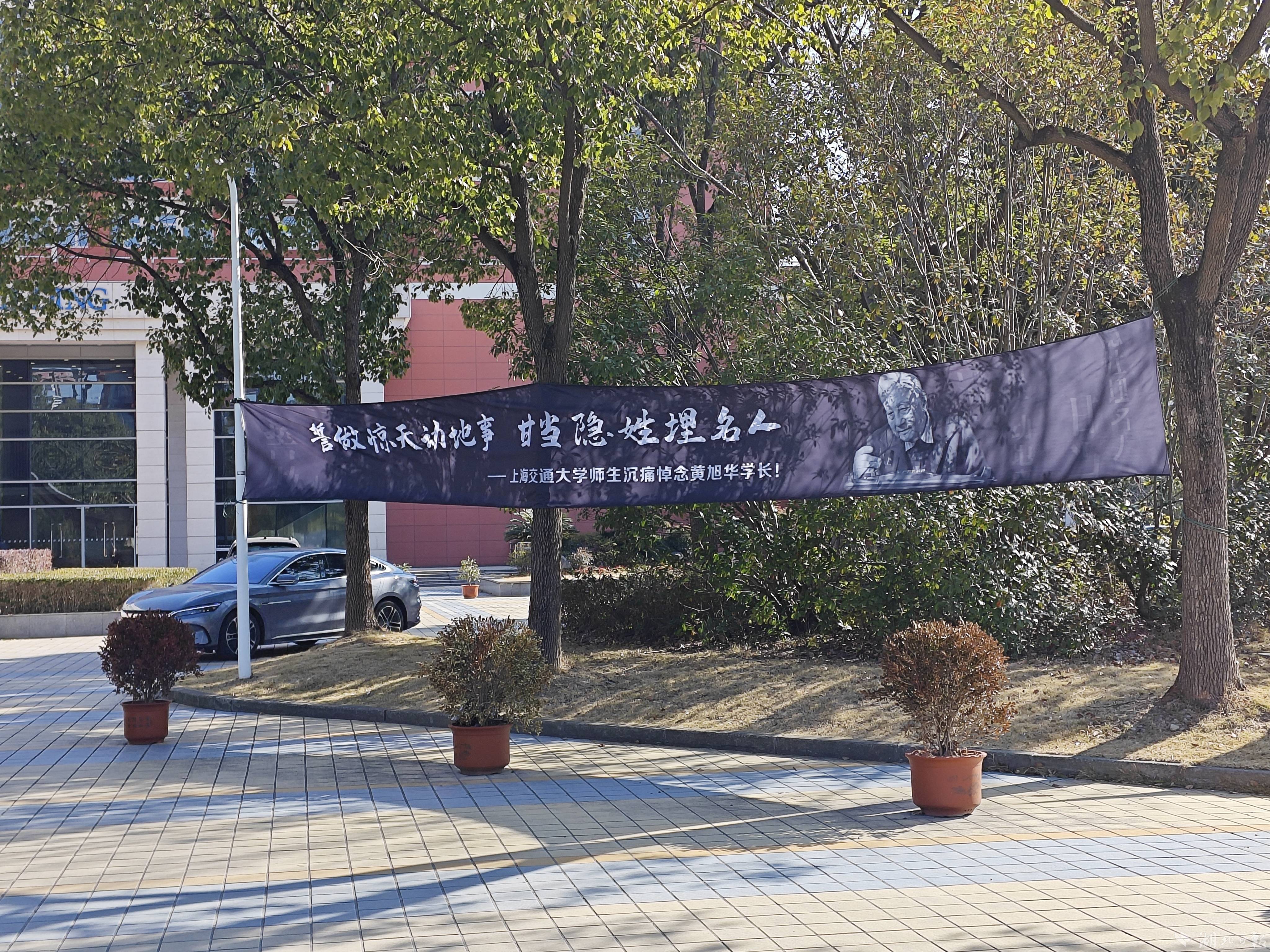 “我们永远怀念您,敬爱的黄旭华学长!”“敬爱的黄旭华学长,一路走好!”“誓做惊天动地事,甘当隐姓埋名人——上海交通大学师生沉痛悼念黄旭华学长!”该校闵行校区木兰船建大楼前,镌刻有黄老亲笔题字的院名石旁,悬挂着追思黄老的横幅。
