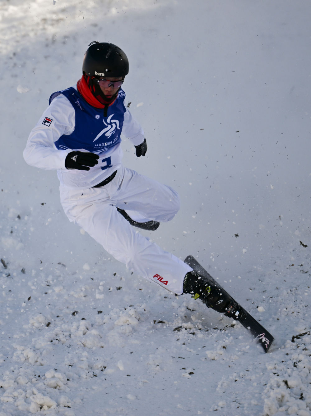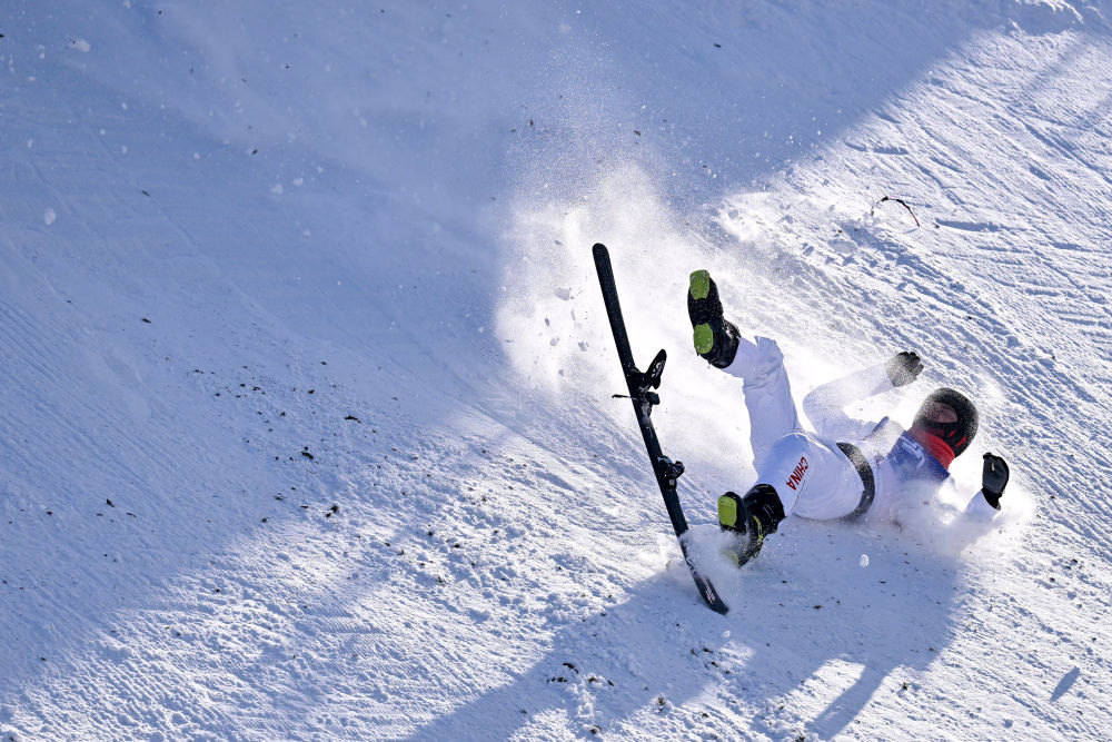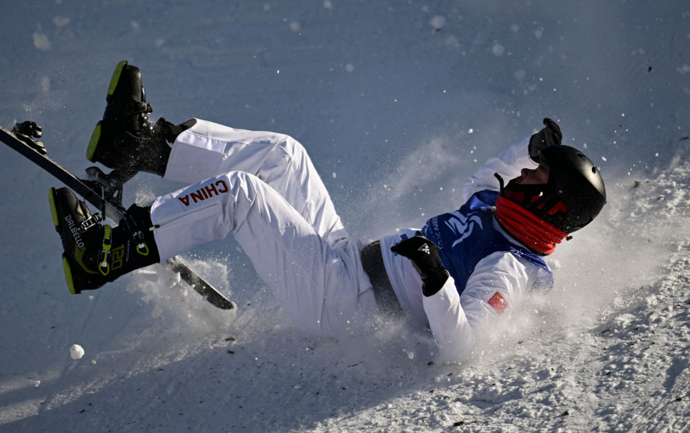 ↑中国选手李心鹏在比赛中摔倒。新华社记者 杨晨光 摄