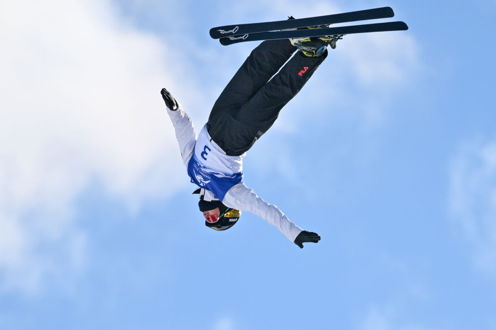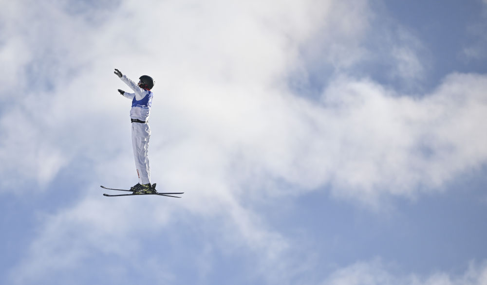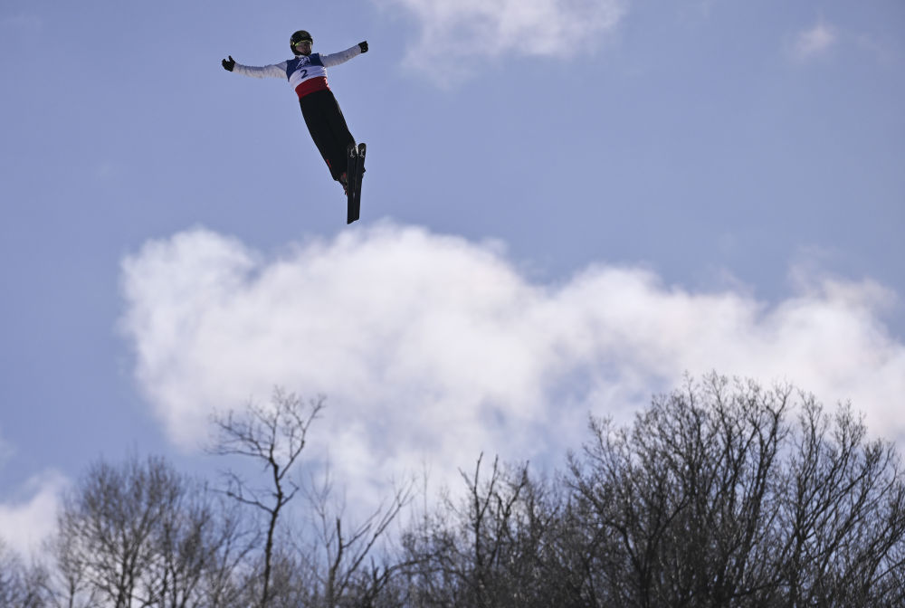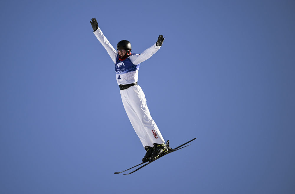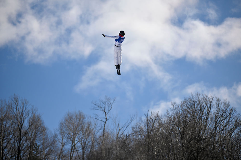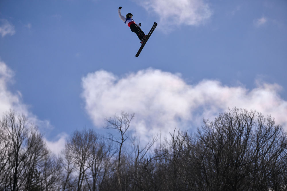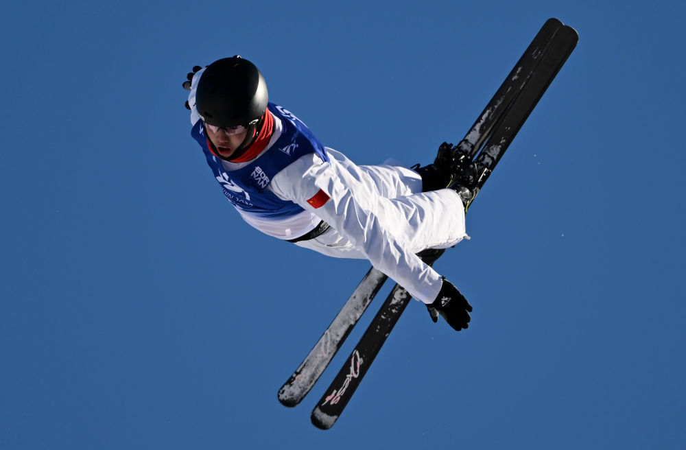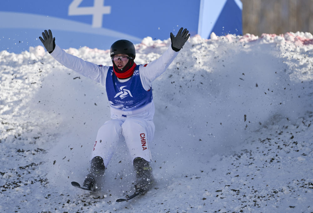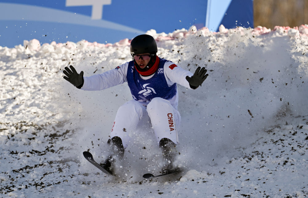↑中国选手李心鹏在比赛中落地。新华社记者 夏一方 摄