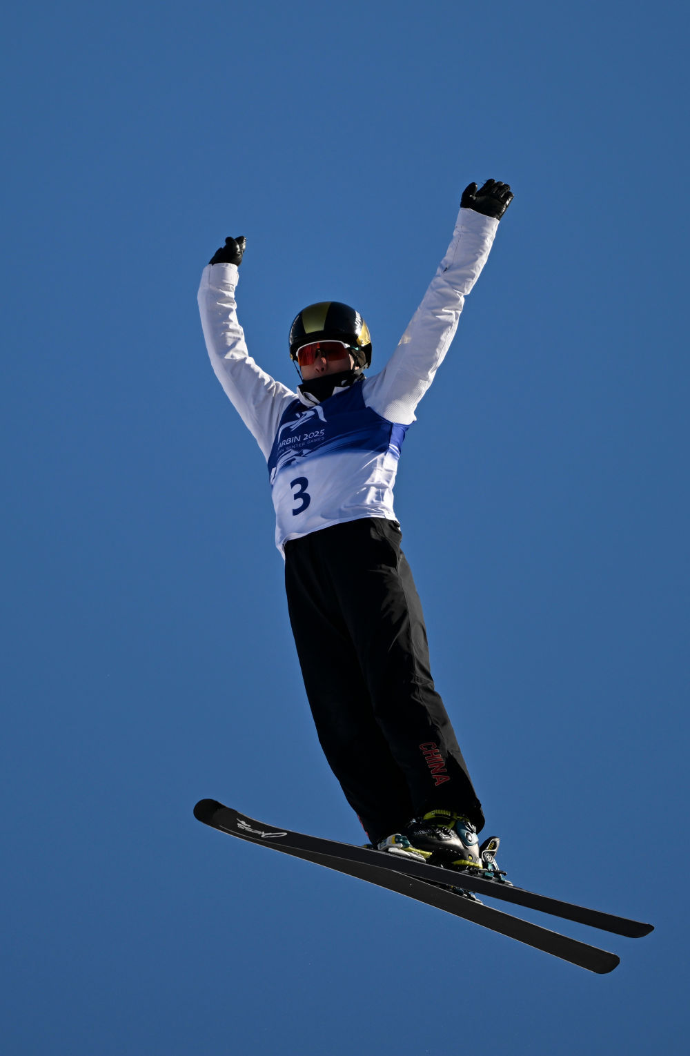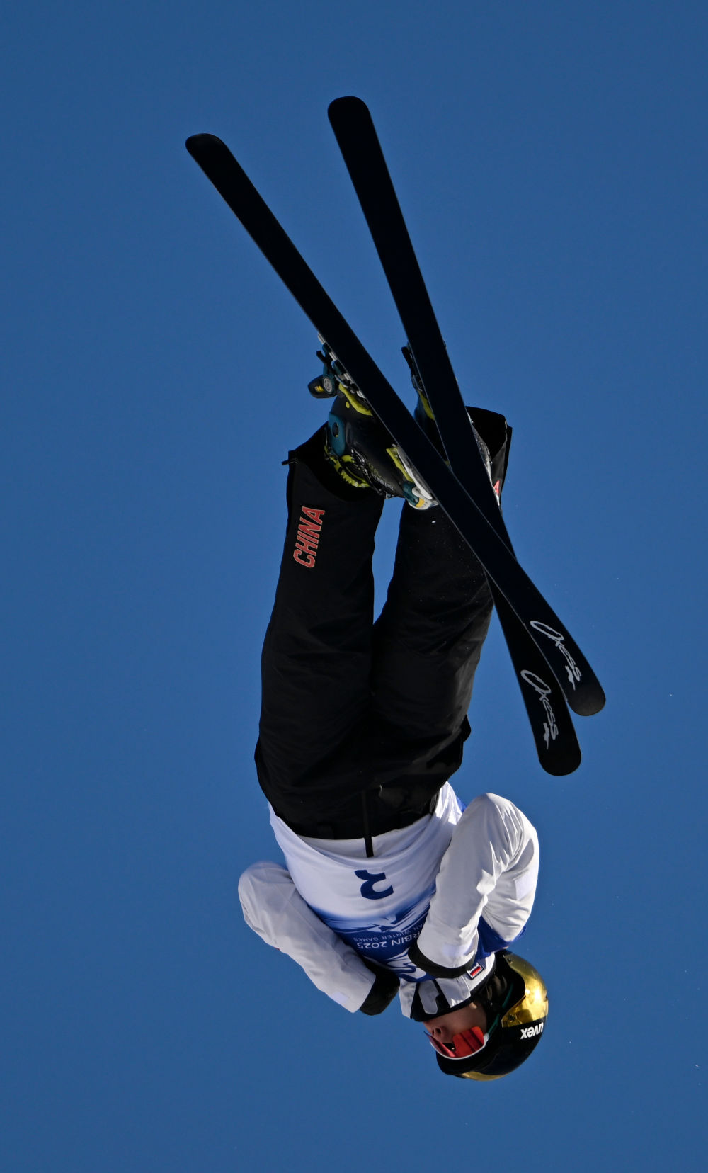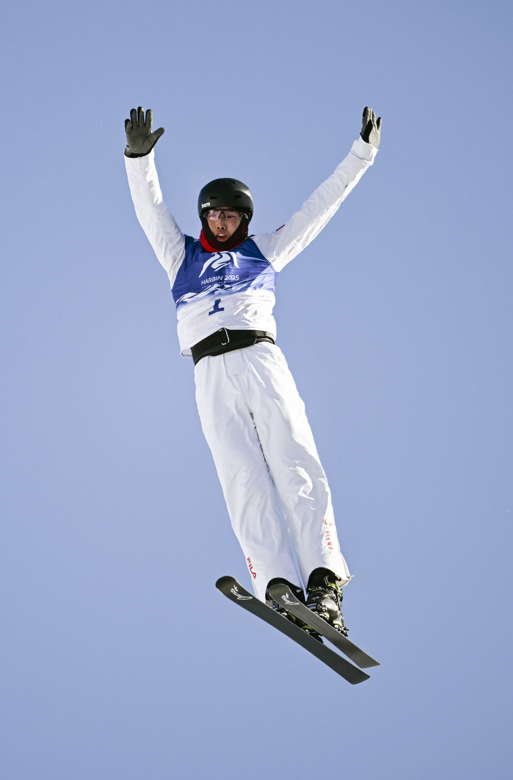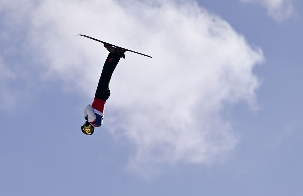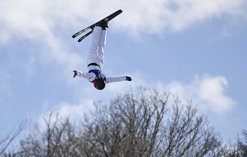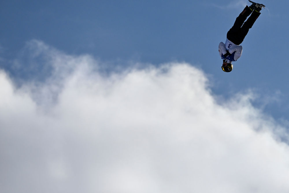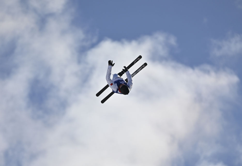 ↑中国选手李心鹏在比赛中落地。新华社记者 夏一方 摄