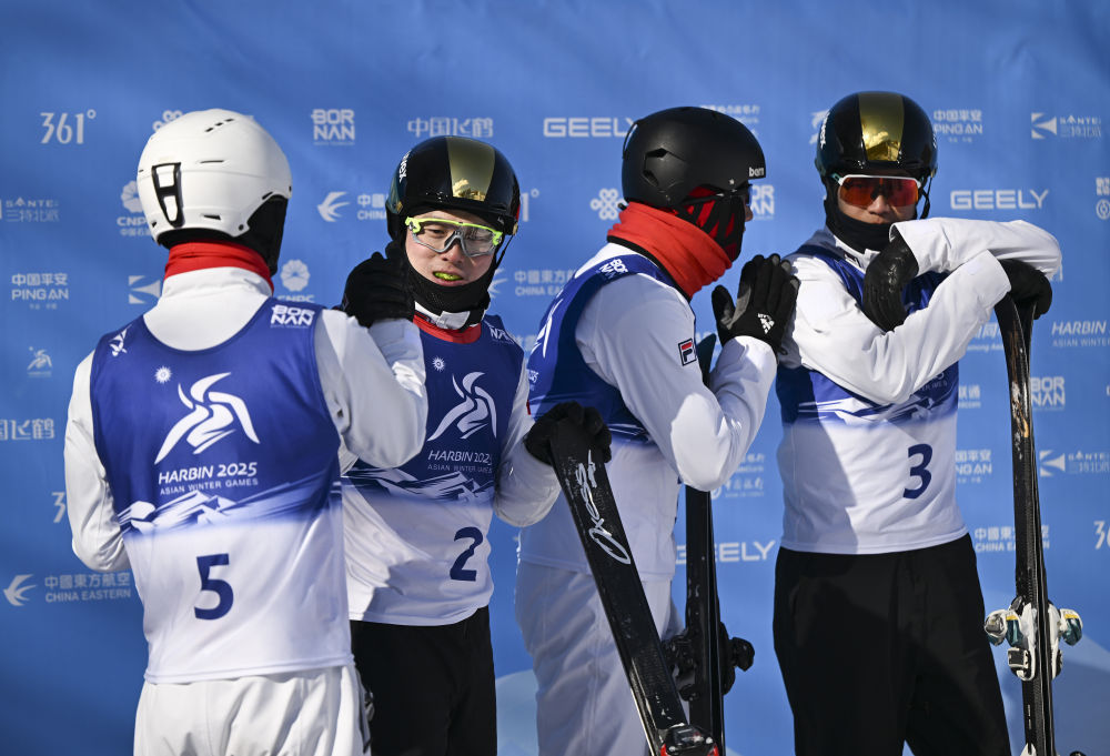 2月9日,在亚布力举行的第九届亚冬会自由式滑雪男子个人空中技巧决赛中,中国选手李心鹏、杨龙啸、齐广璞包揽冠、亚、季军。