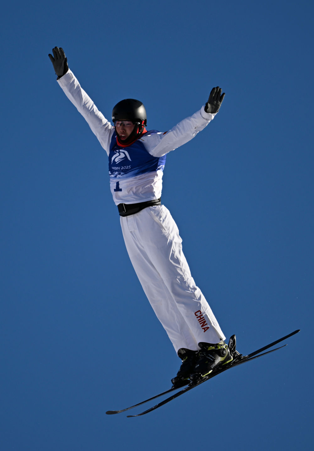 ↑中国选手杨龙啸在比赛中落地。新华社记者 夏一方 摄