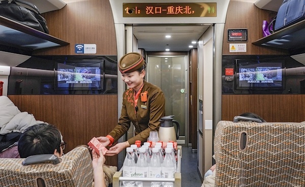 春节期间,记者乘坐多趟(次)汉渝高铁列车,采访武铁春运一线乘务员,体验他们不一样的春节。从他们“舍小家顾大家的团圆”的默默奉献中,看到责任的重量和使命的光荣。他们用温情陪伴旅客平安抵达。他们一路的微笑和努力,丰富着“流动中国”的澎湃活力。
