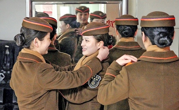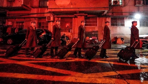 1月30日(大年初二)凌晨5点半,天还未亮,在武汉铁路局汉口公寓(早班值乘乘务员的集合过夜住宿点),汉口动车组车间乘务组D7组,列车长朱丽便早早起床,叫起了组员徐层云、雷诗妍、潘湘、余晴,洗漱、化妆。6点20分,天空微微泛白,她们穿上制服、挽起发髻、整理好仪态、拉起行装箱,列队出发到汉口火车站值乘当日的G3453次列车。