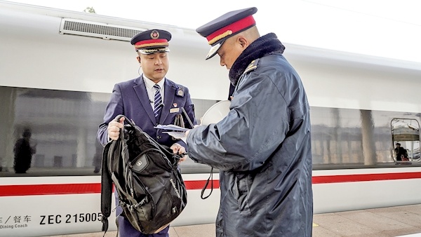 2月3日(大年初六),“每个春节,我都和旅客一起过。”正在列车上当班的D3组列车长易茜,接受采访时说。今年春节,她的班次与朱丽相仿。95后的她已在列车上过了10多个春节。她说,旅客舒适乘坐、平安到站,是她们心中最大的安慰,她们力所能及地为他们做得更多。此次当值时,列车停靠到终点站汉口站,乘客走完后,她在7车8F行李架上,发现旅客遗失的包,开包检查发现里面有两万元现金、四包香烟、一个档案袋等物品。她第一时间编制客运记录,一边准备将遗失物品交由汉口站,一边积极联系失主。在多方努力下,终于找到了失主,旅客顺利取到背包。