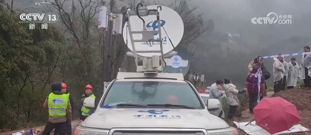 除了救援外,灾区的应急通信保障工作也至关重要。运营商在现场架设了各种设备,保障网络正常运行。